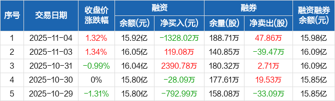 浙商银行:融资净偿还1328.02万元,融资余额15.92亿元(11-04)