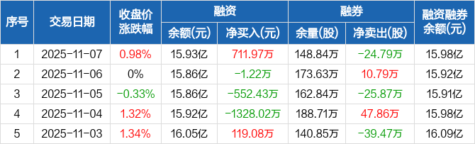 浙商银行:融资净买入711.97万元,融资余额15.93亿元(11-07)
