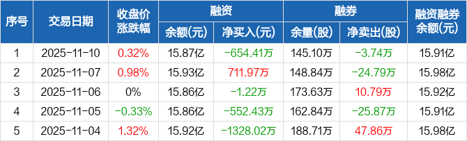 浙商银行:融资净偿还654.41万元,融资余额15.87亿元(11-10)