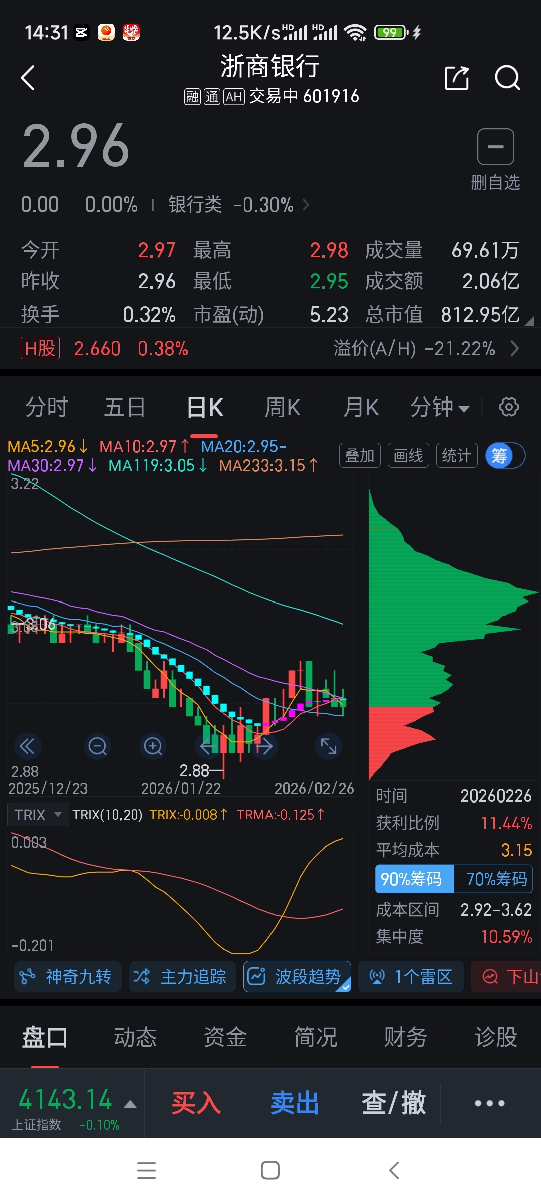 浙商银行A、H股日K线对比图!绝对是量化在里面捣鬼,压的股价动弹不了!