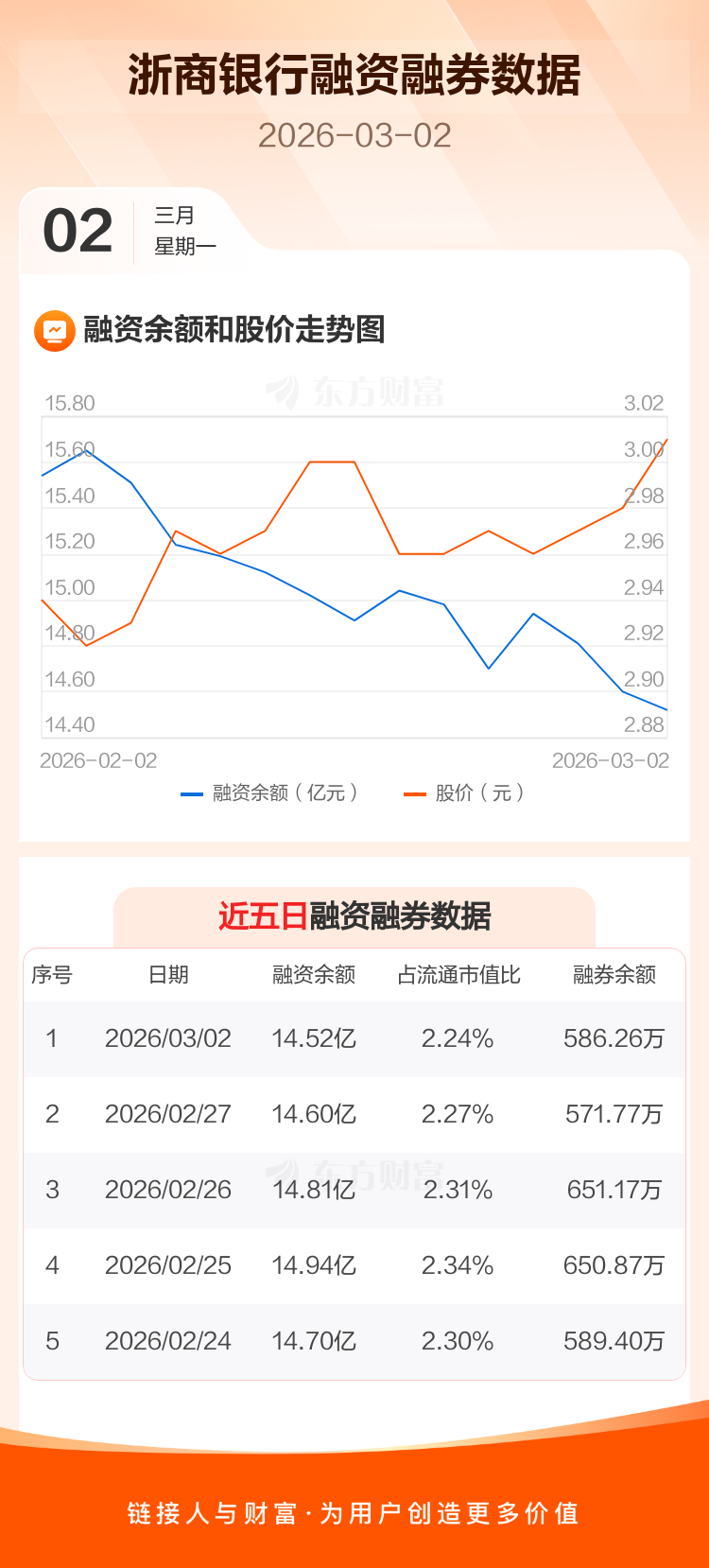 浙商银行:融资净偿还726.76万元,融资余额14.52亿元
