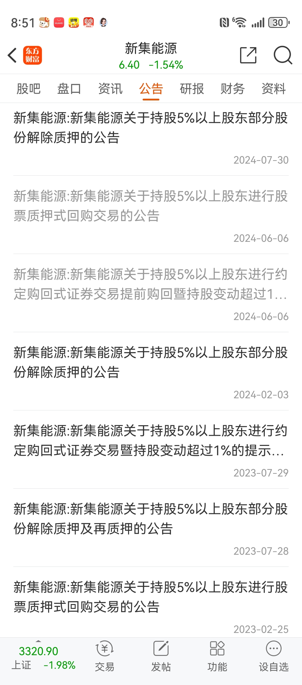 $新集能源(SH601918)$ 去年二月是解除质押,然后开始大涨,然后去年6月高位进行质押式回购