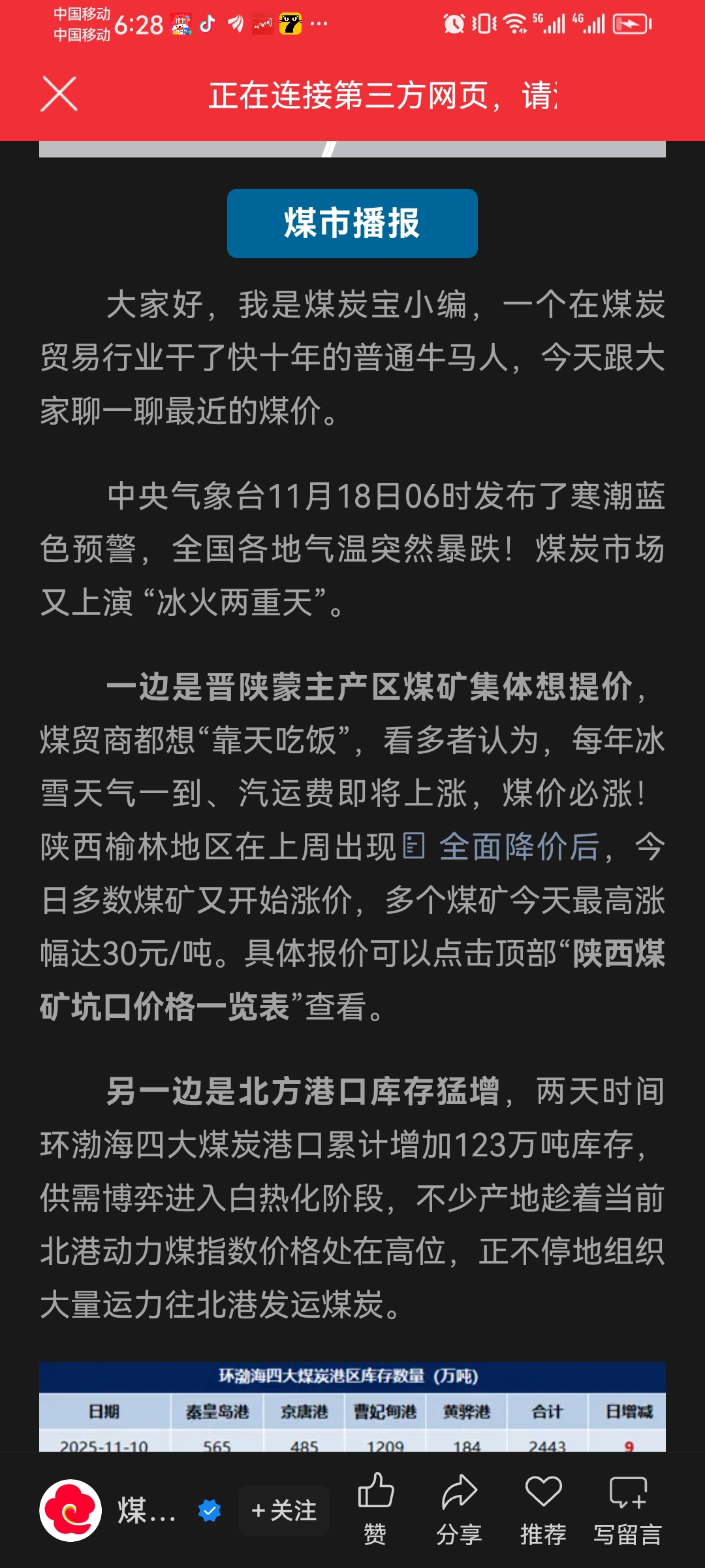 $新集能源(SH601918)$ 天冷了煤炭要涨价,拿稳筹码坐等拉升