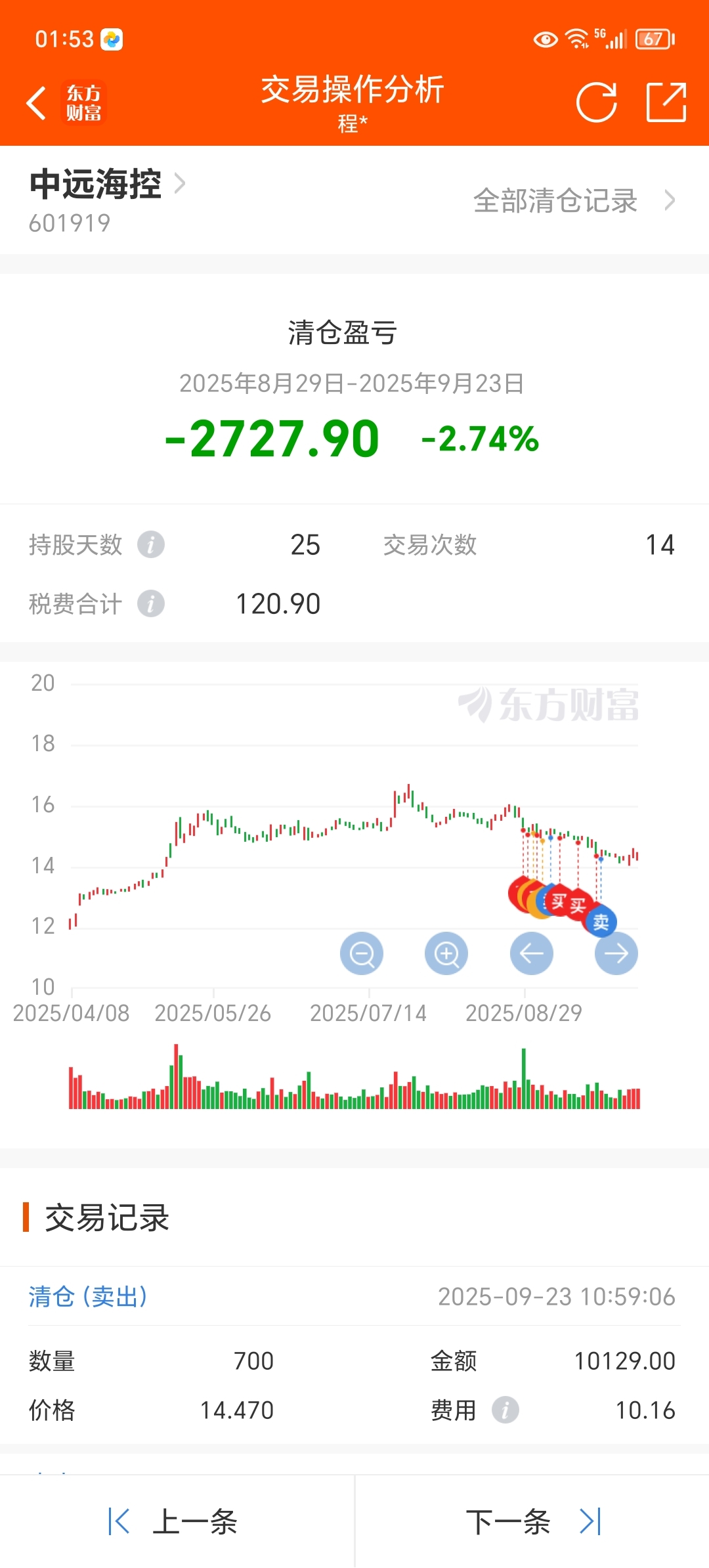 $中远海控(SH601919)$ 本来想长期做t的,奈何奈何啊,清仓了,下来14我一定再买一点