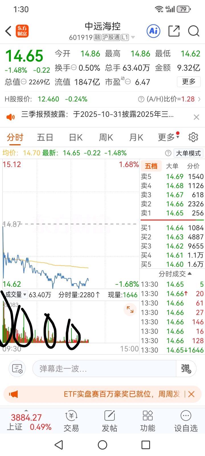 $中远海控(SH601919)$ 大单对倒砸盘压价格,拆小单拉长时间线吃筹码,别被群里的某些动物带节奏呀