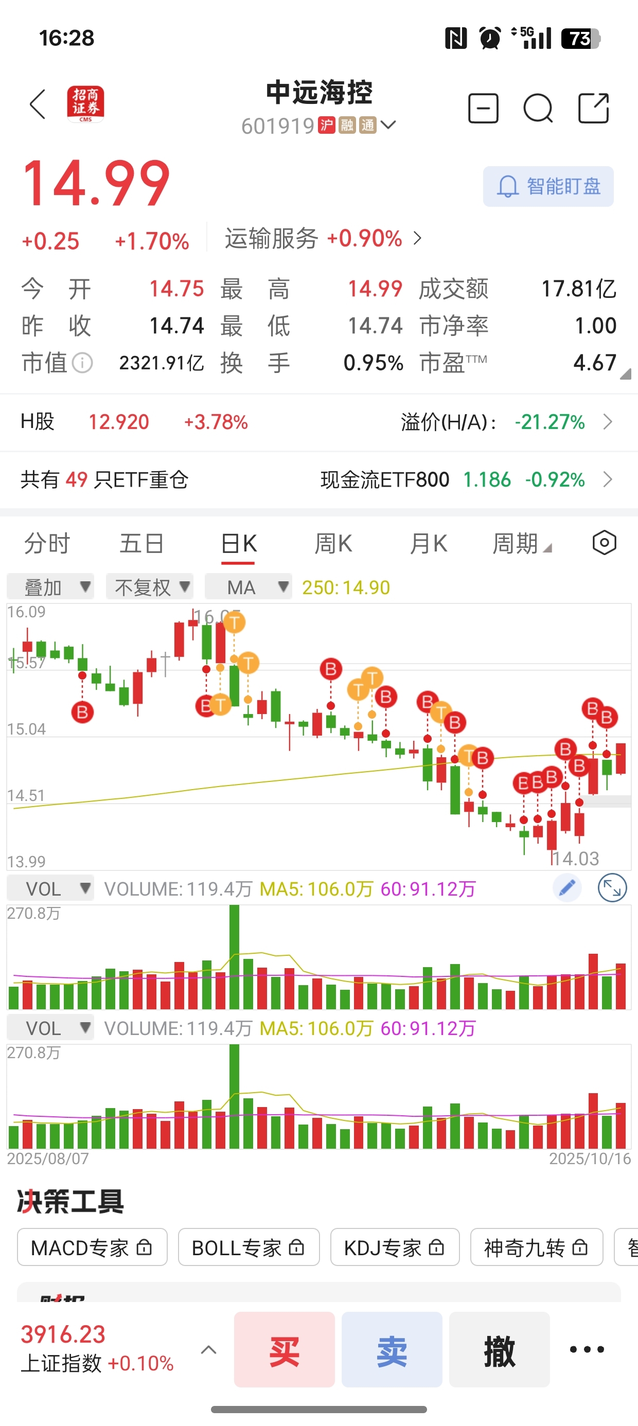 $中远海控(SH601919)$ 以后可能再也没有低价买入的机会了,哎
