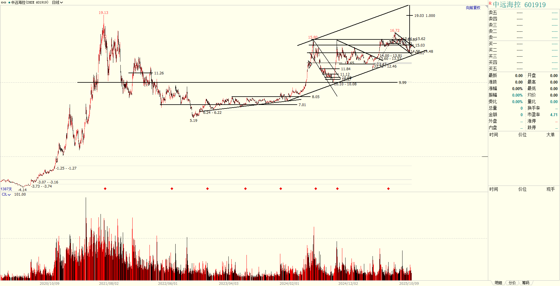 一把直尺打天下/中远海控16.7-14之间的下跌为大级别调整,对应主升浪19附近