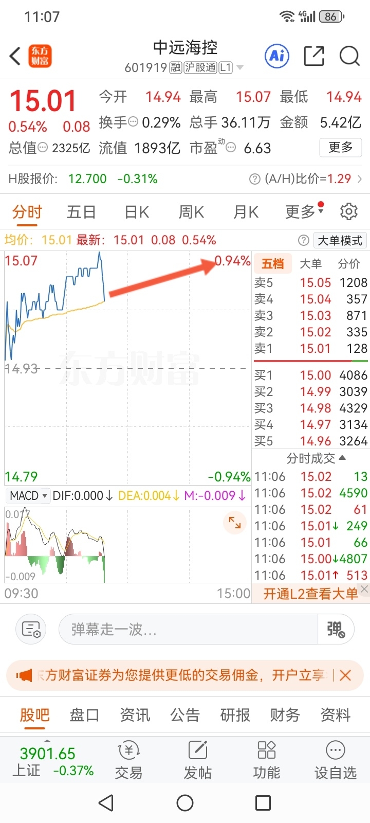 $中远海控(SH601919)$ 猛砸缓拉,吸筹之道