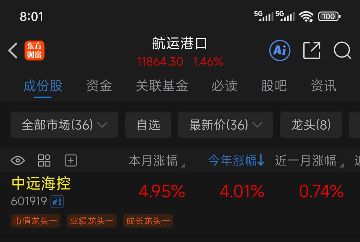 $中远海控(SH601919)$ 市值龙头?业绩龙头?成长龙头?就这涨幅?就这收益?跑不过版块跑不过大盘牛市守寡?
