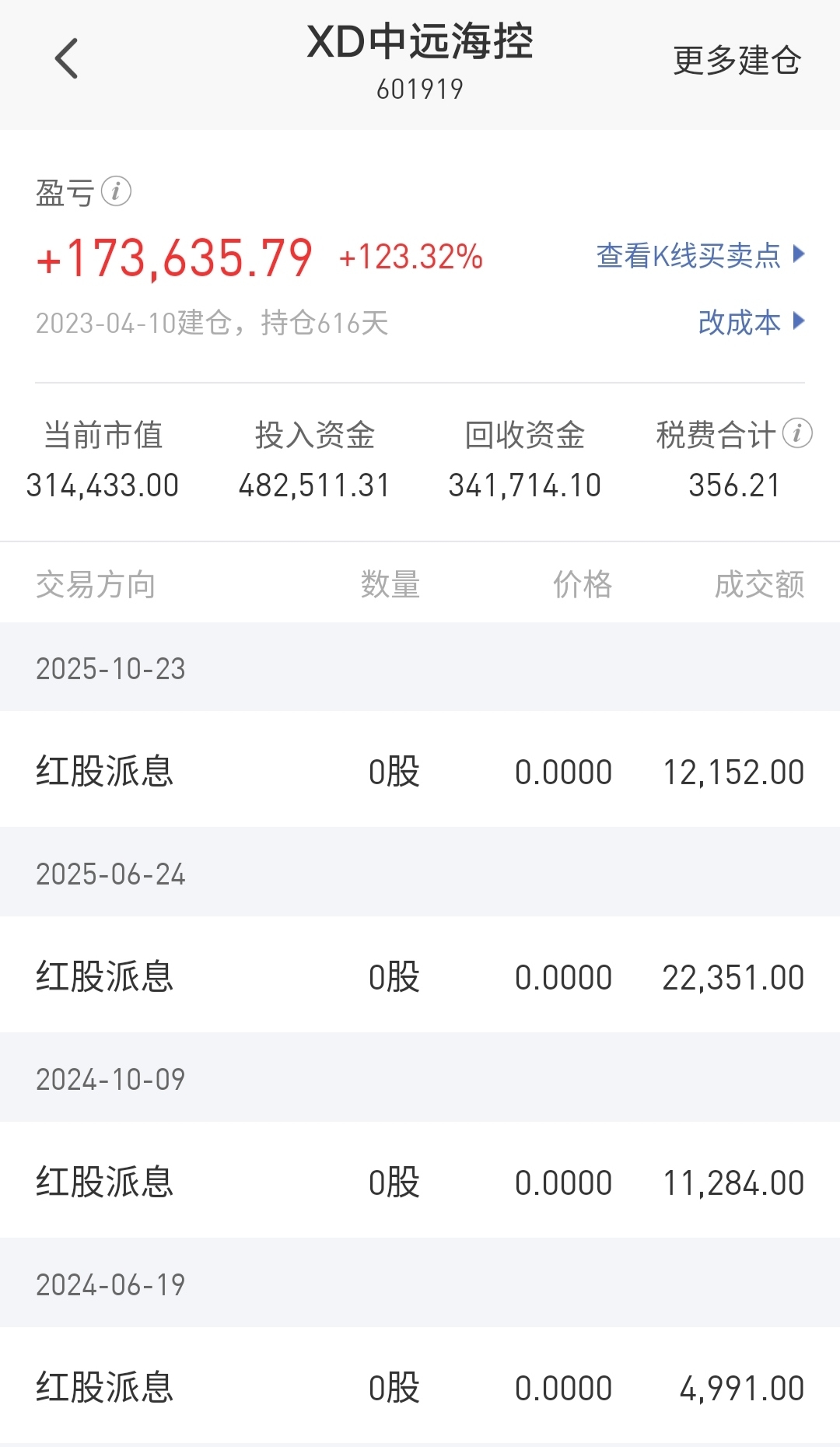 $XD中远海(SH601919)$ 616天,10.8的本,目前成本6.5