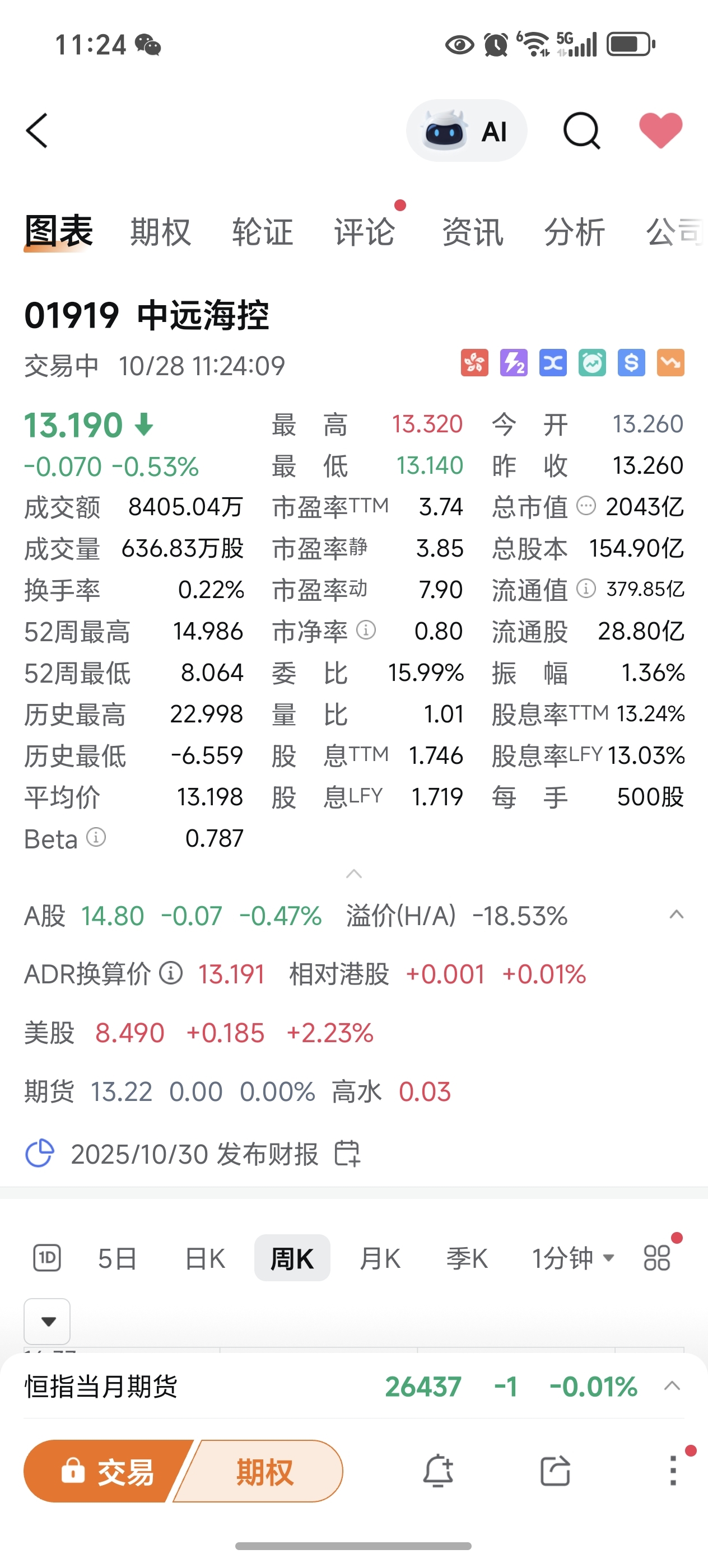 $中远海控(SH601919)$ 港股怎么这么便宜啊