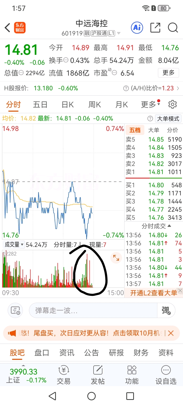 $中远海控(SH601919)$ 一大波带血筹码被汪汪吃掉了