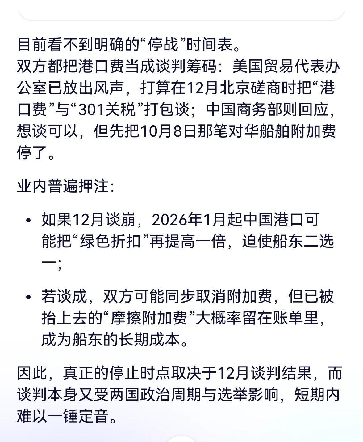 $中远海控(SH601919)$ 中美船舶海运加费战何时停止