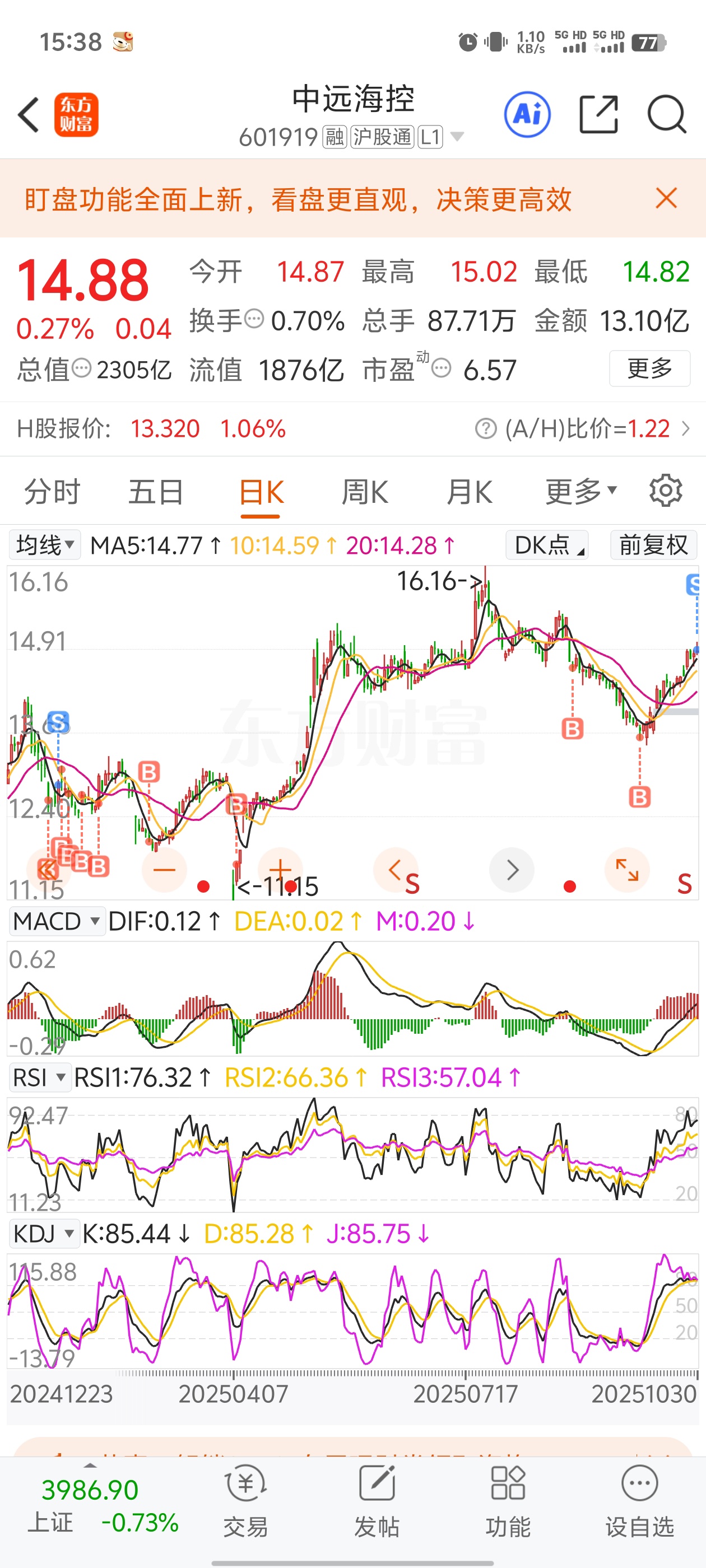 $中远海控(SH601919)$ 加成满仓了,没管住手,今天就卖了一点