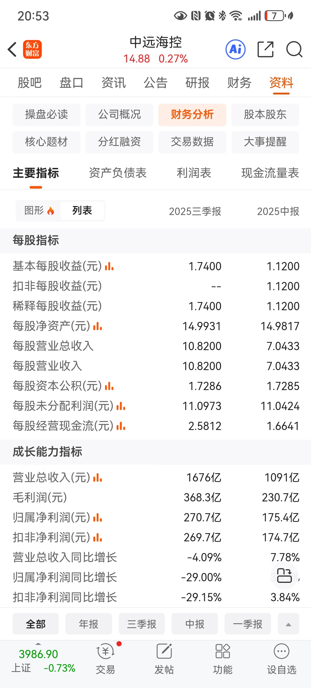 晚上一直在等海控和五粮液的三季报,五粮液先出来三季度超预期大幅下滑,心里一凉啊;