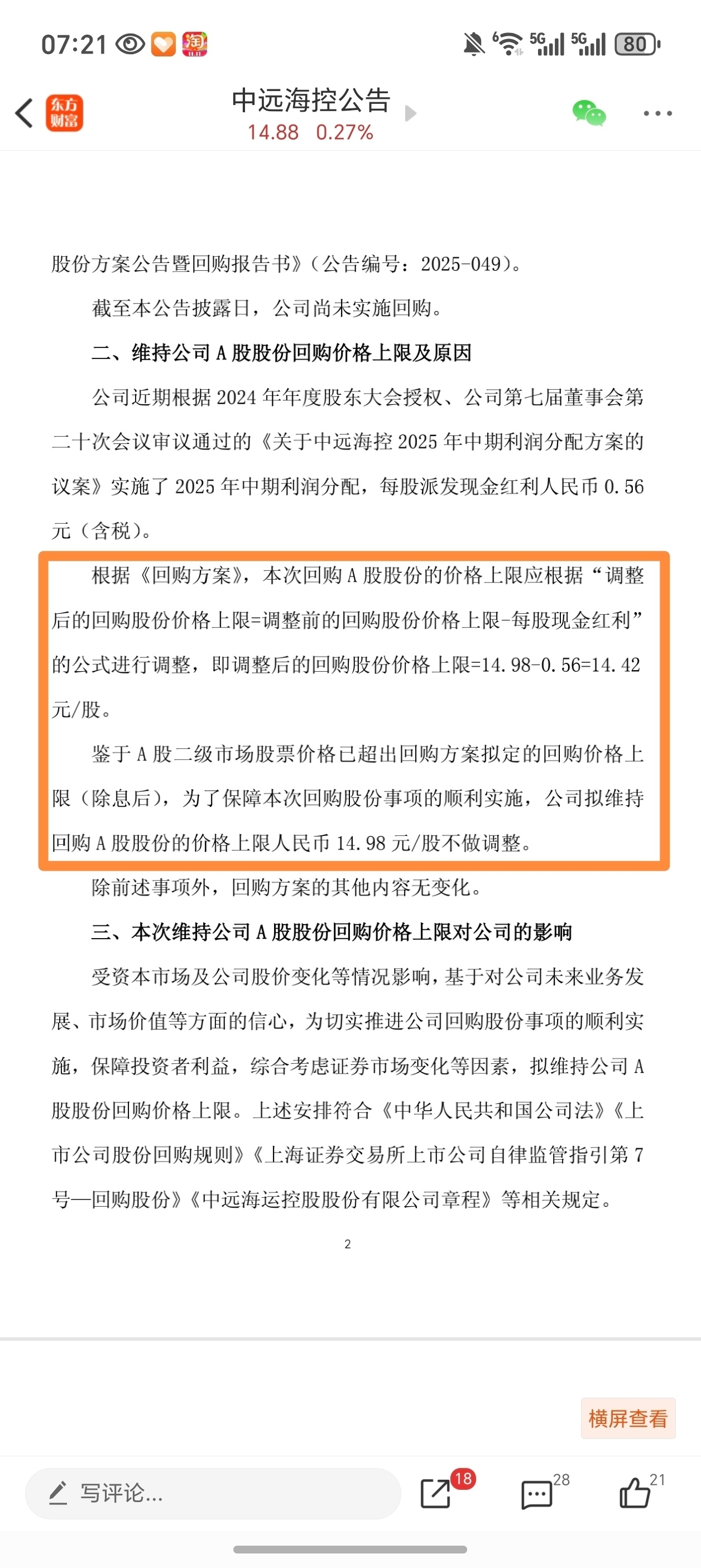 回购价不再是:14.98-0.56=14.42国之重器,有担当