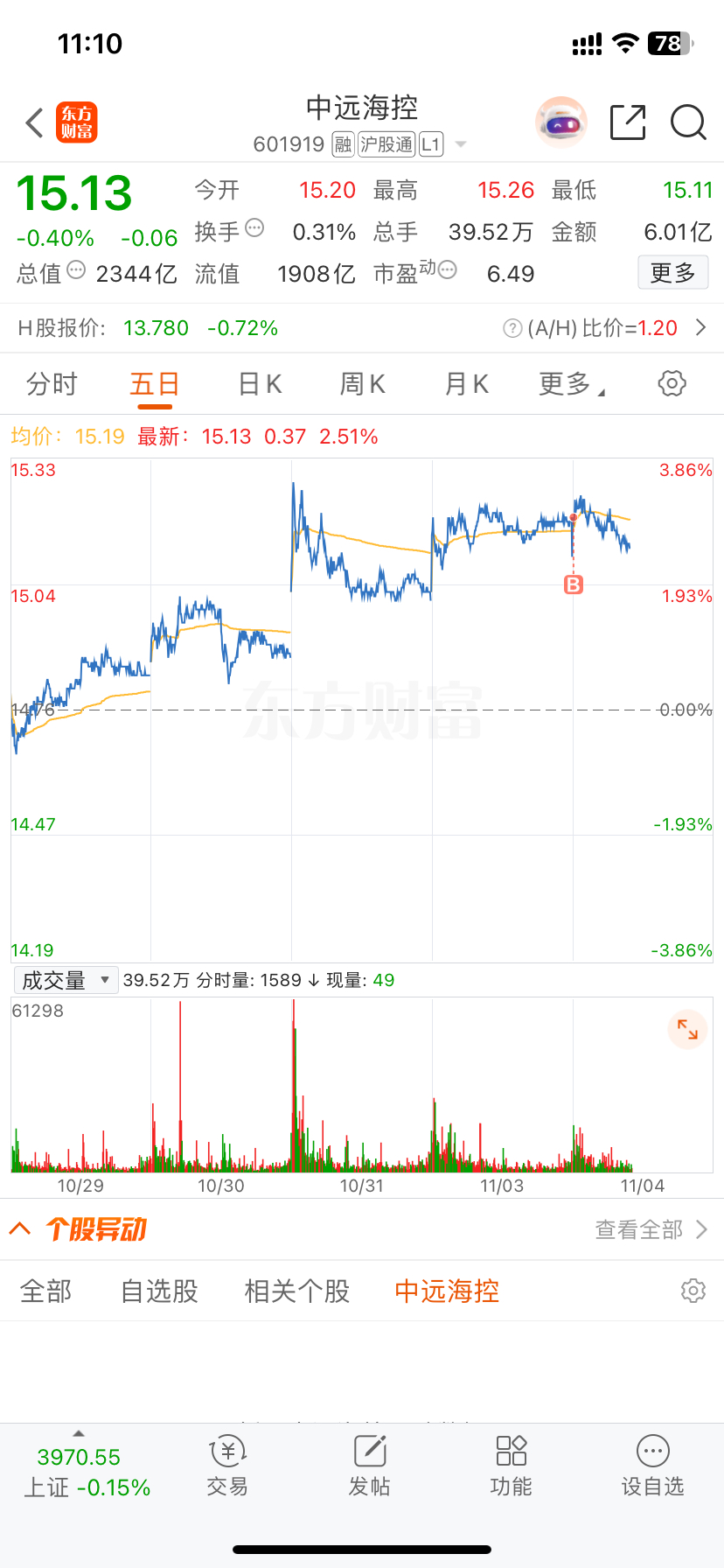 $中远海控(SH601919)$ 加仓养老,早上加早了
