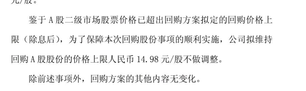 咋感觉不像好消息啊,上限14.98,现价15.03,这意思还要跌点才回购吗?