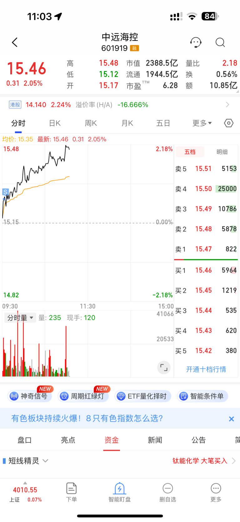 $中远海控(SH601919)$ 15块卖了,我好烦,每次都是一买就套,一卖就飞