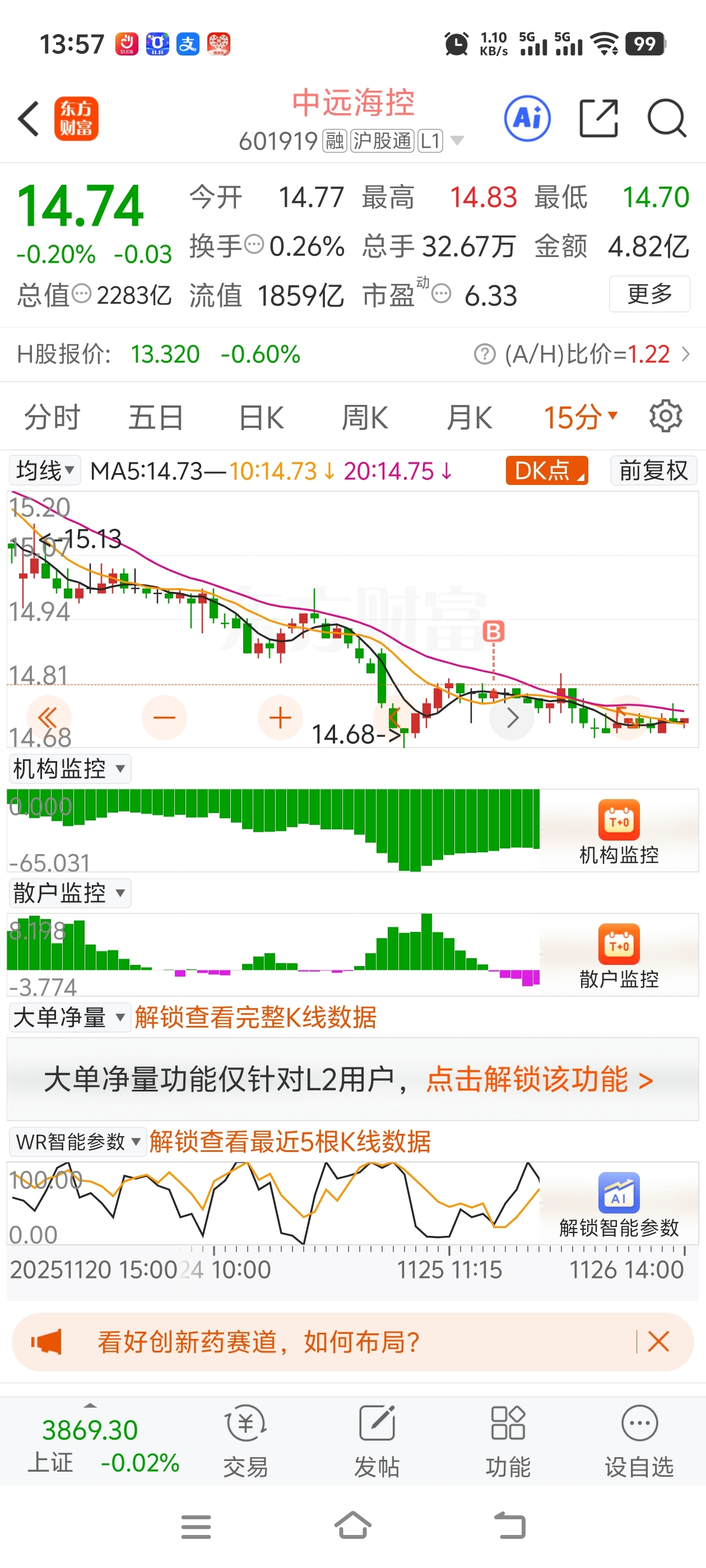 $中远海控(SH601919)$ 废了,机构一直在出货,完,犊,子,了
