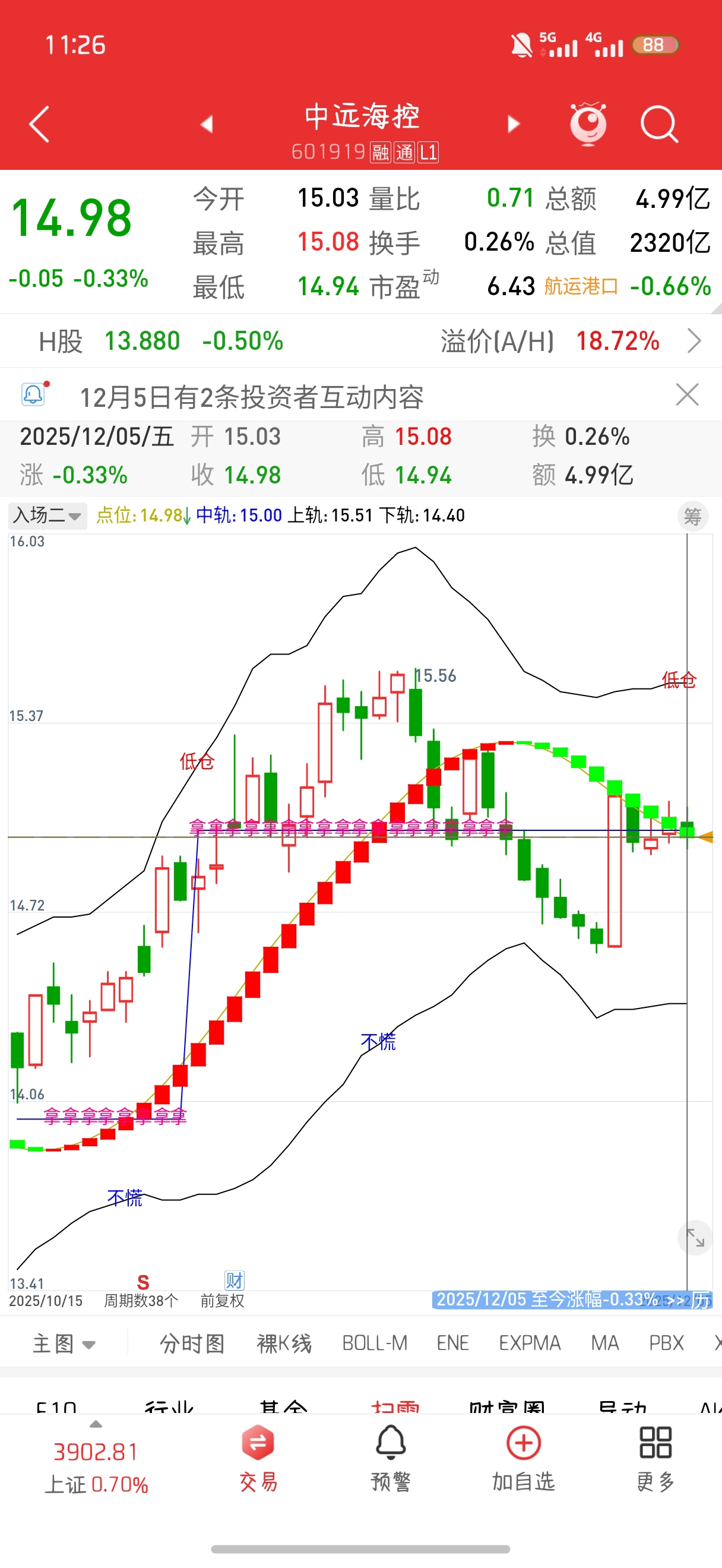 $中远海控(SH601919)$ 15以下可近,14.5加!