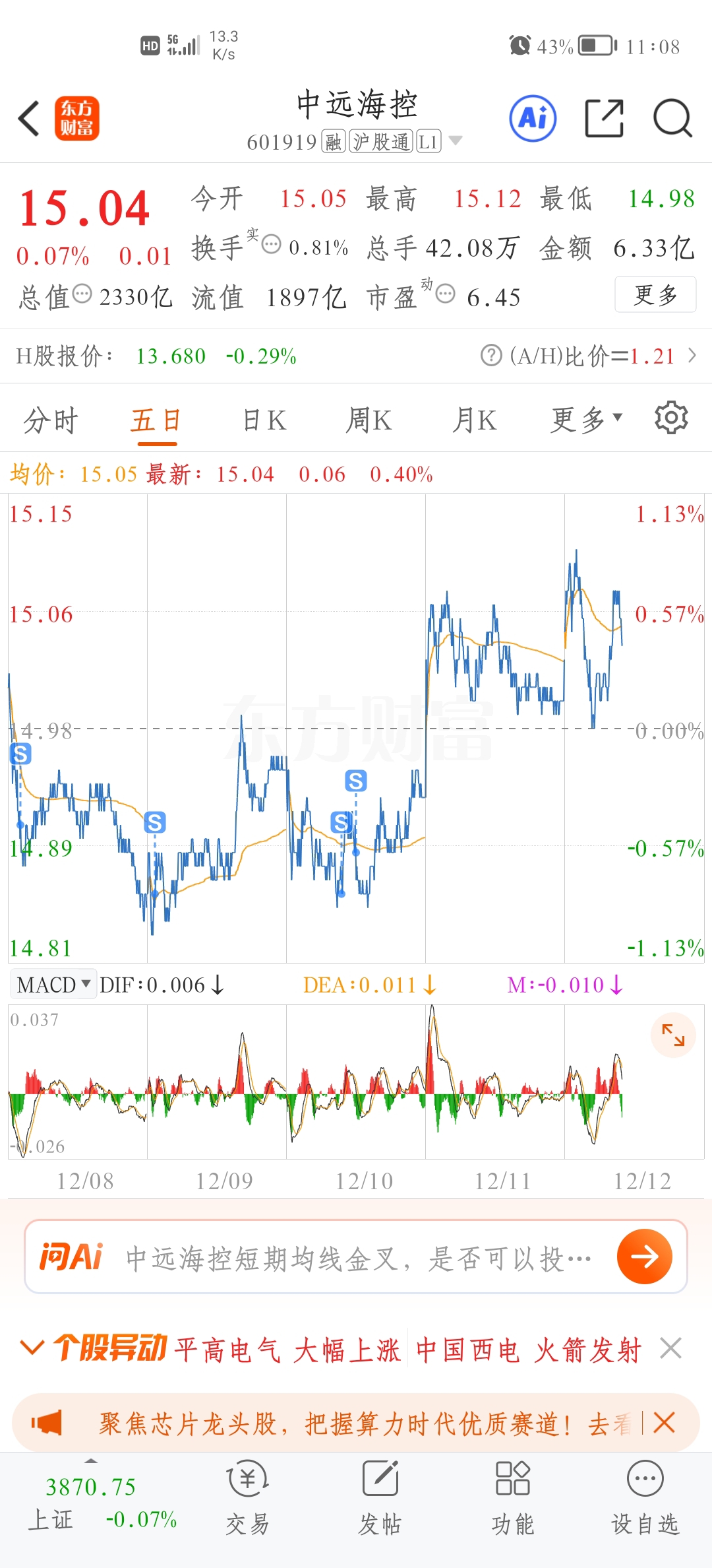 $中远海控(SH601919)$