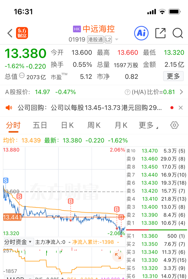 在外面摸爬滚打亏了上万,还是海控靠谱些目前A股持仓17000股,港股持仓1500