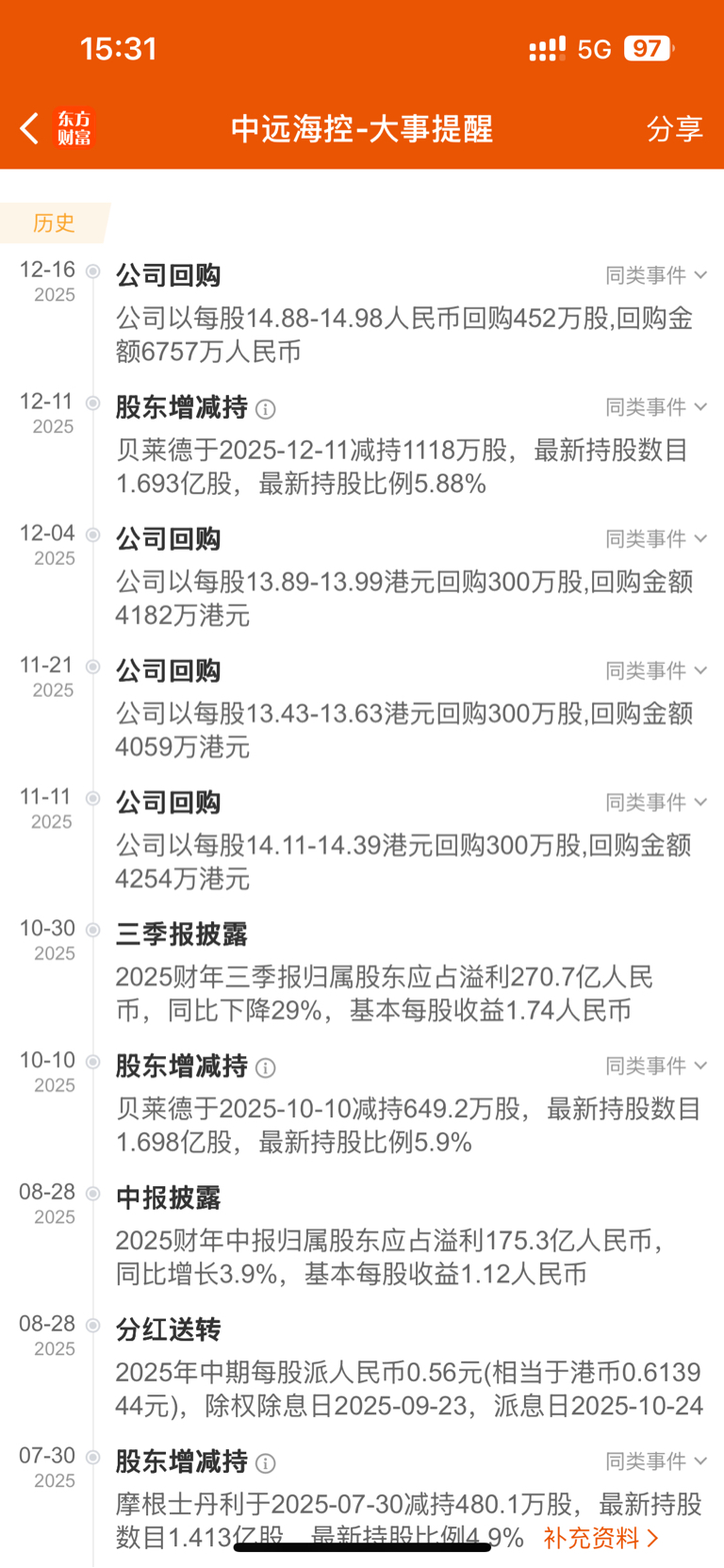$中远海控(SH601919)$ #强势机会# 我说今天怎么大涨,A股昨天回购完了,已达上限