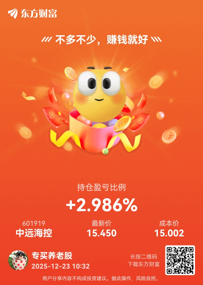 $中远海控(SH601919)$ 不算分红,涨幅都快三个点了