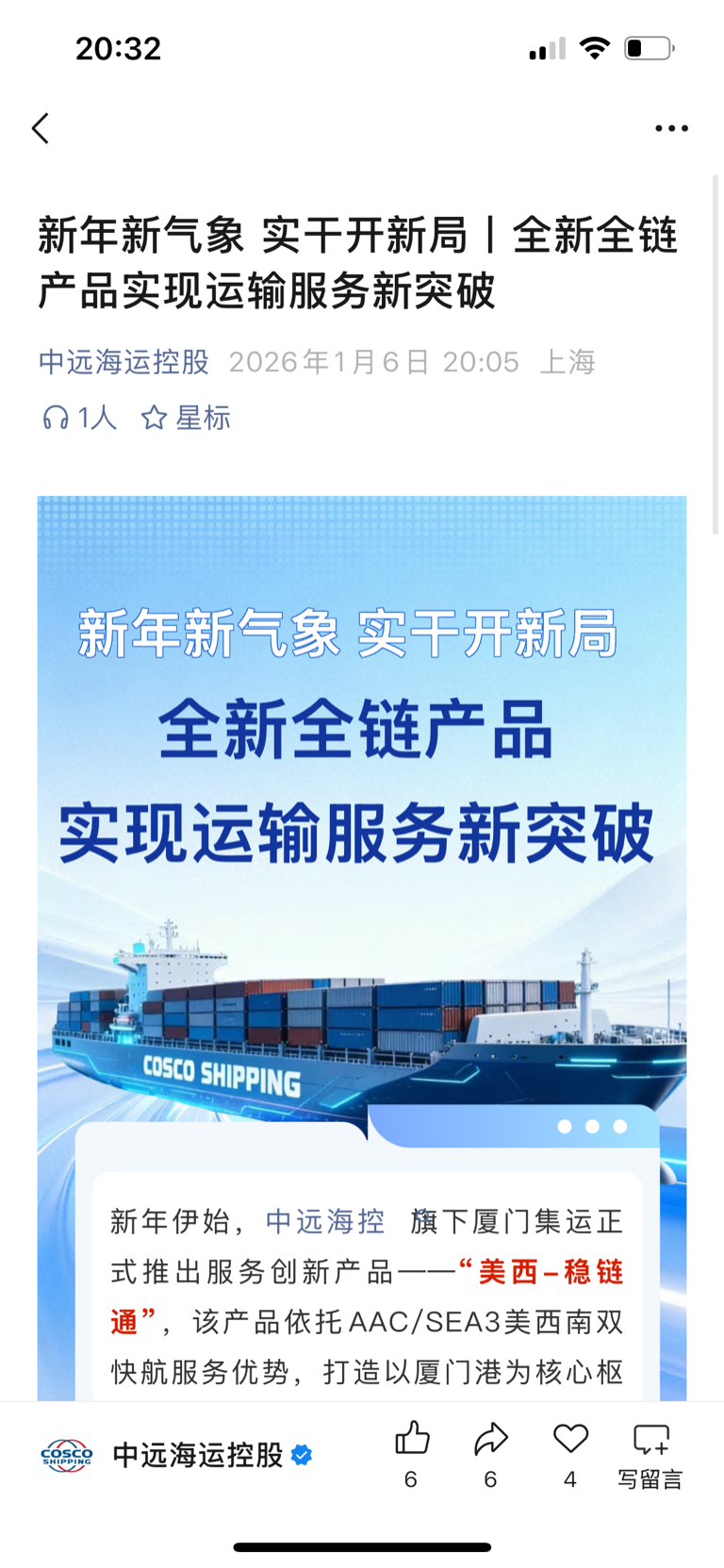 $中远海控(SH601919)$ 产品一个接一个,服务链条一直在延伸
