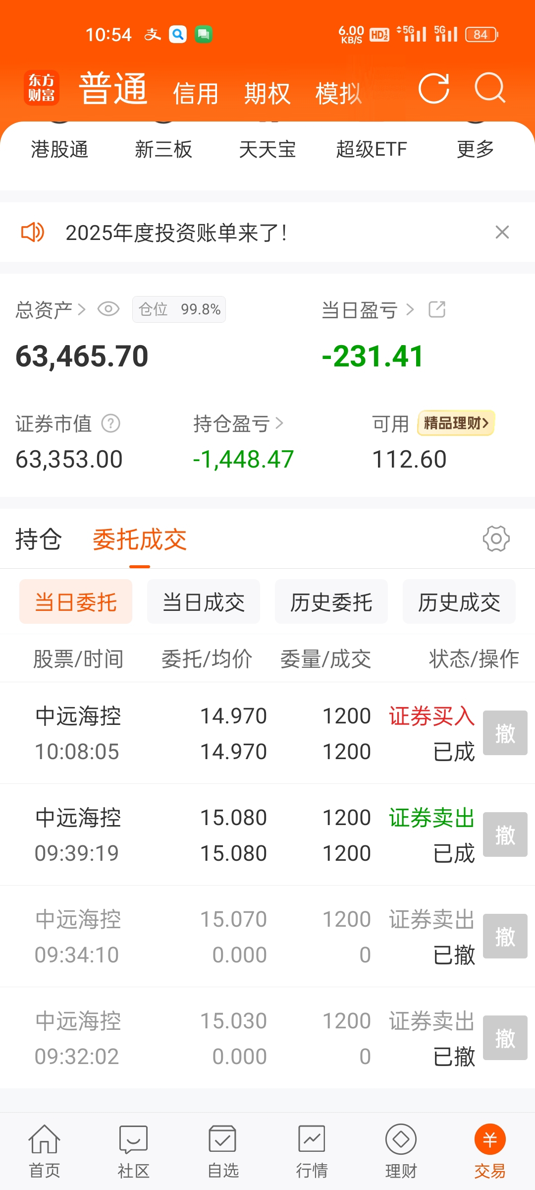 $中远海控(SH601919)$ 底仓不动吃分红,另外一个账户买了点做t,跌了放着不动,涨了马上卖,不能死拿啊,不然心情不美丽
