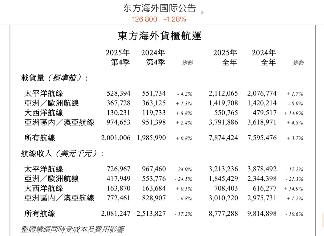 东方海外国际25年净利润同比去年只下降10.6%,超预期!