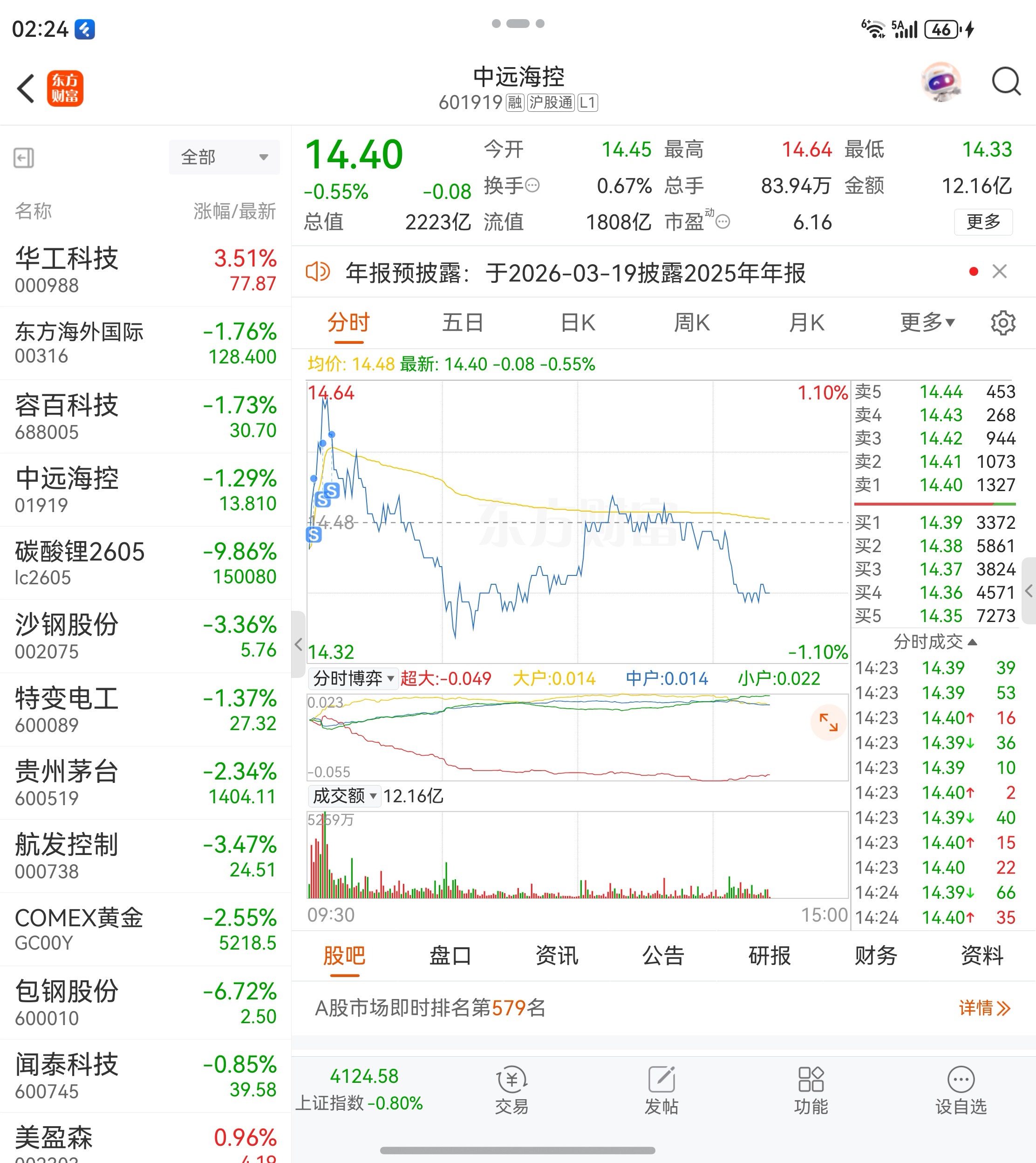 $中远海控(SH601919)$ 早上全卖了,正确的选择。