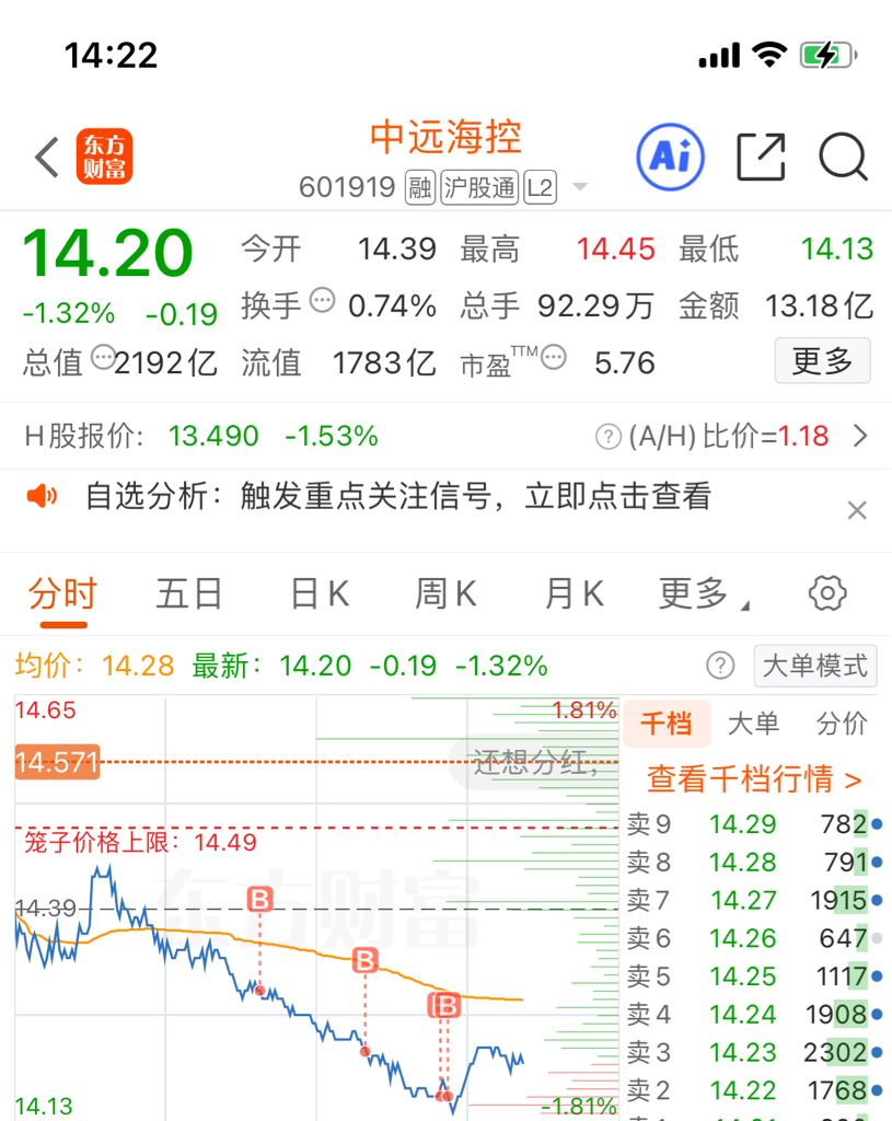 目前仓位来到了75%,剩下的仓位我会在14以下陆续打满,有净资产垫底,我巴不得你