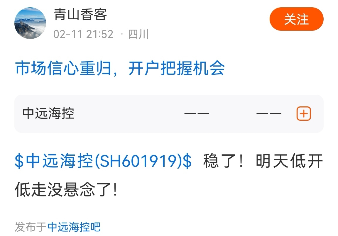 郑重声明:用户在财富号/股吧/博客等社区发表的所有信息(包括但不限于文字、视频、音频、数据及图表)仅代表个人观点,与本网站立场无关,不对您构成任何投资建议,据此操作风险自担。请勿相信代客理财、免费荐股和炒股培训等宣传内容,远离非法证券活动。请勿添加发言用户的手机号码、公众号、微博、微信及QQ等信息,谨防上当受骗!