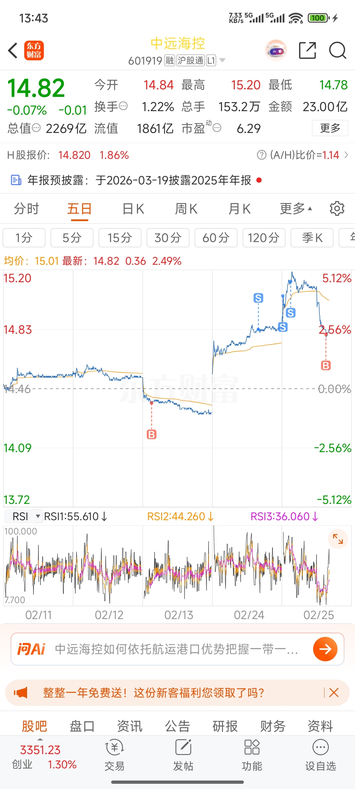 $中远海控(SH601919)$ 长期看好,短期做T。不喜欢做T的就拿着吃分红吧。
