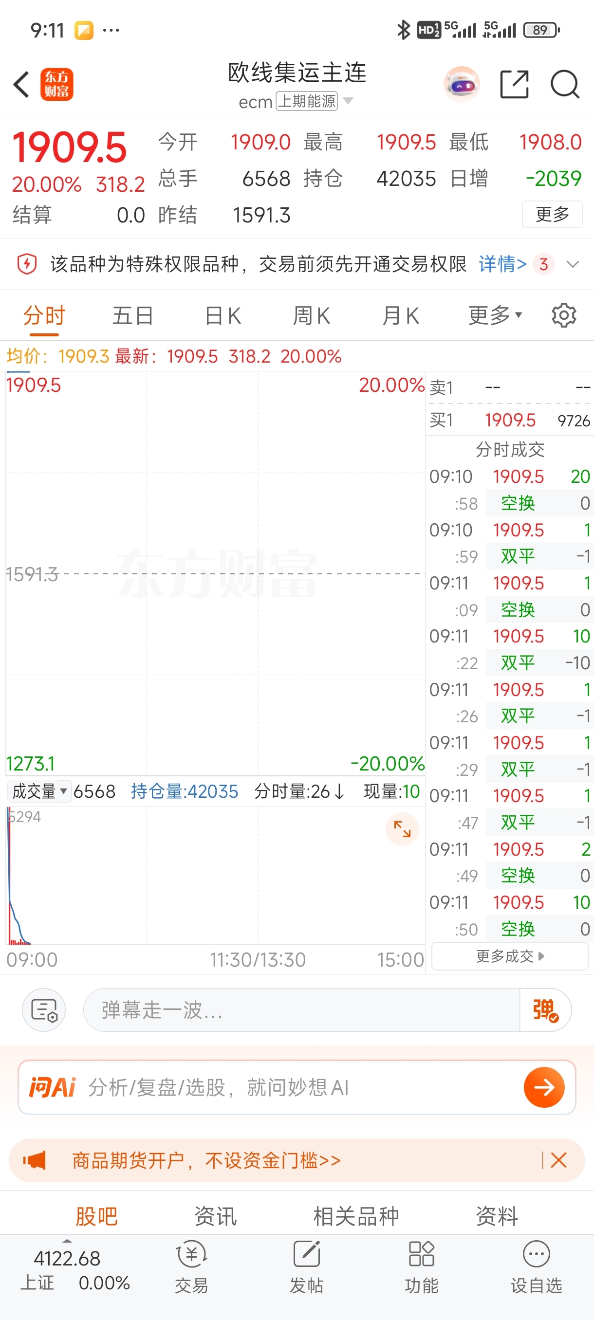 $中远海控(SH601919)$ 今天稳了,欧洲集运主连又是一板
