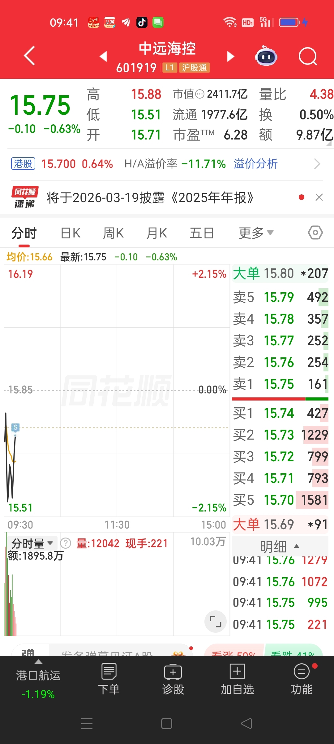 $中远海控(SH601919)$ 趋势转弱,选择离场