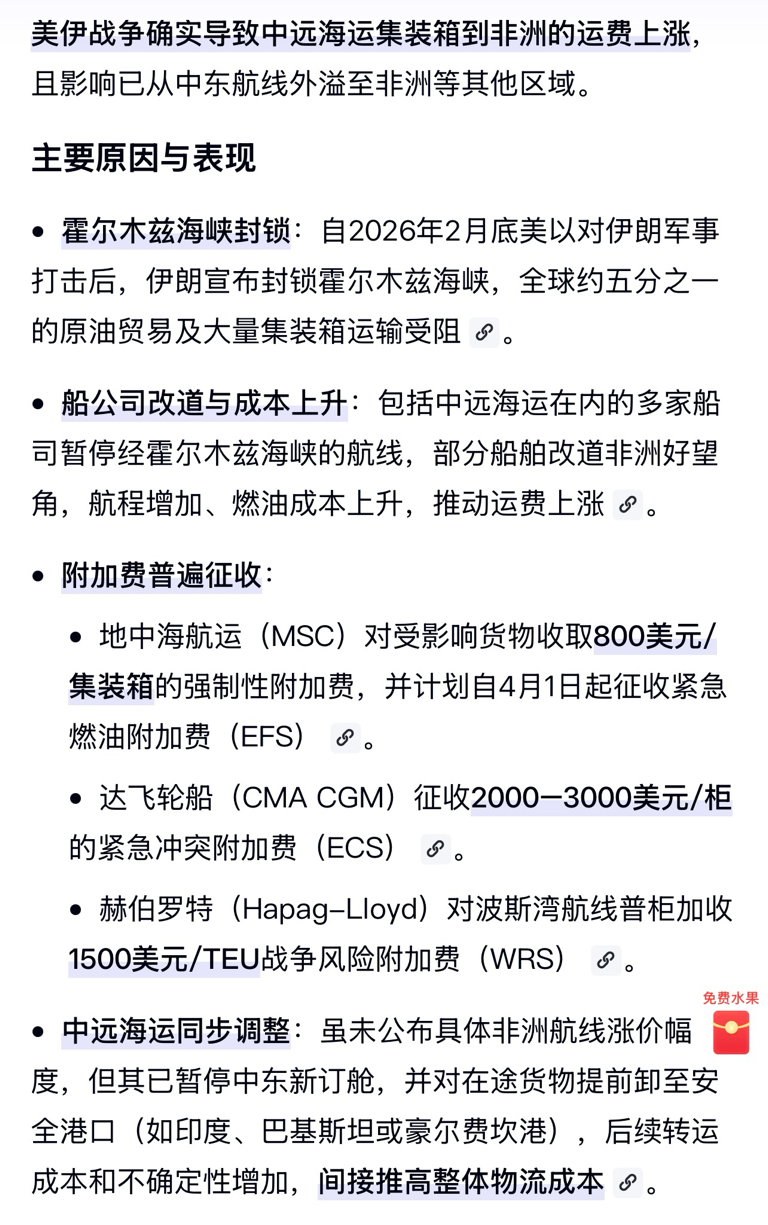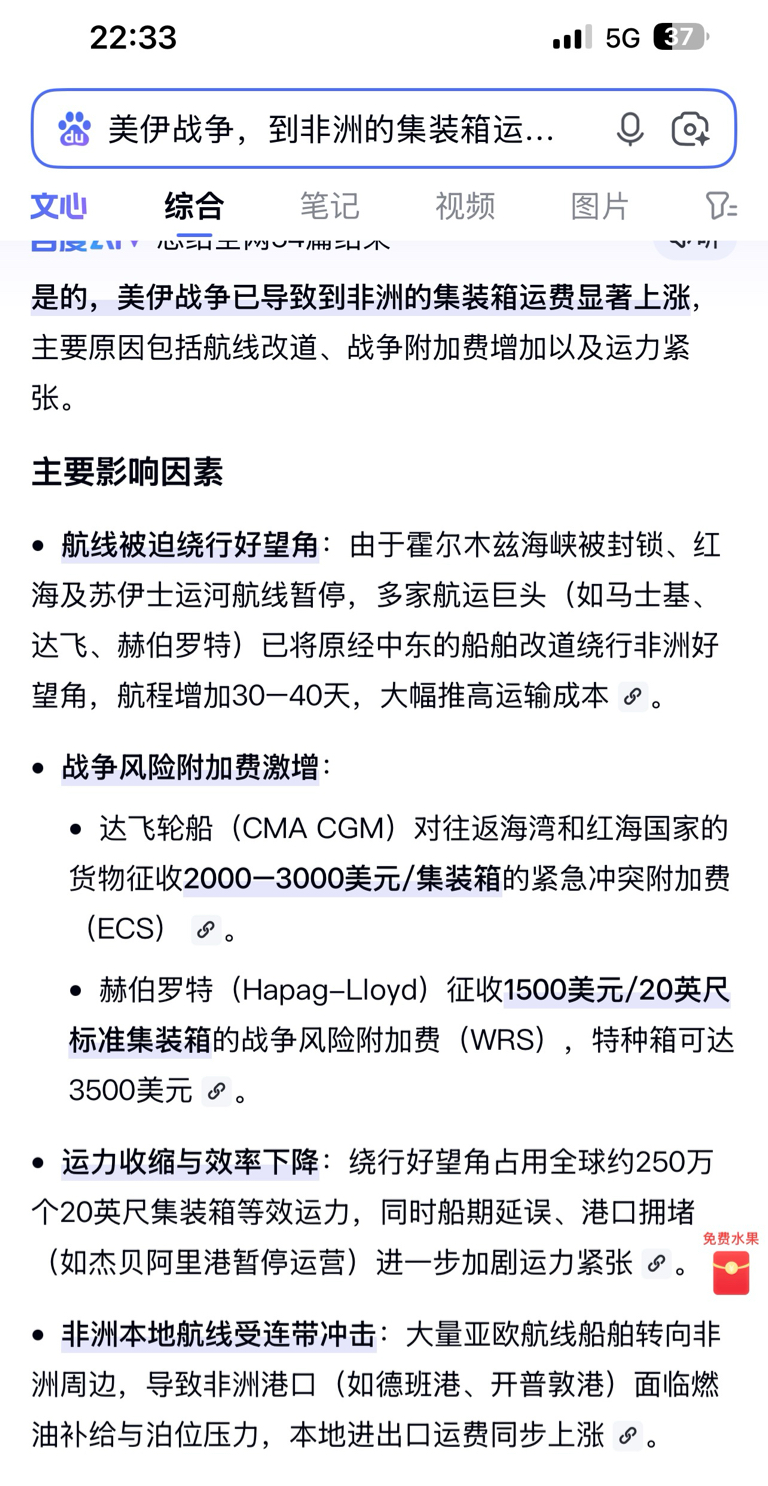 $中远海控(SH601919)$ 中远去非洲集装箱涨价,那一季度利润不起飞了?