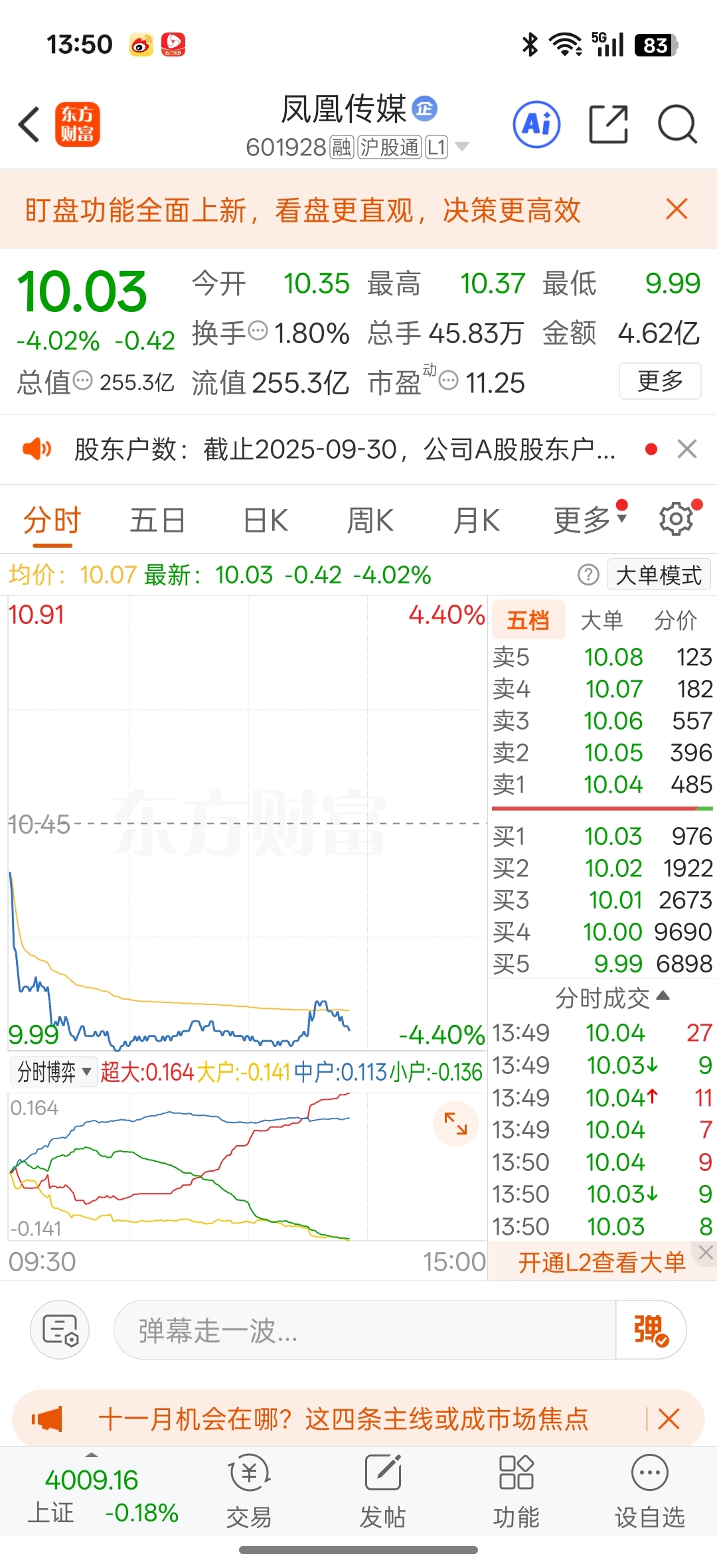 $凤凰传媒(SH601928)$ 明明大家都用的东方财富,怎么我的是主力流入1点6亿多,怎么还有人说主力是流出的,有图有真相,你们有图吗?
