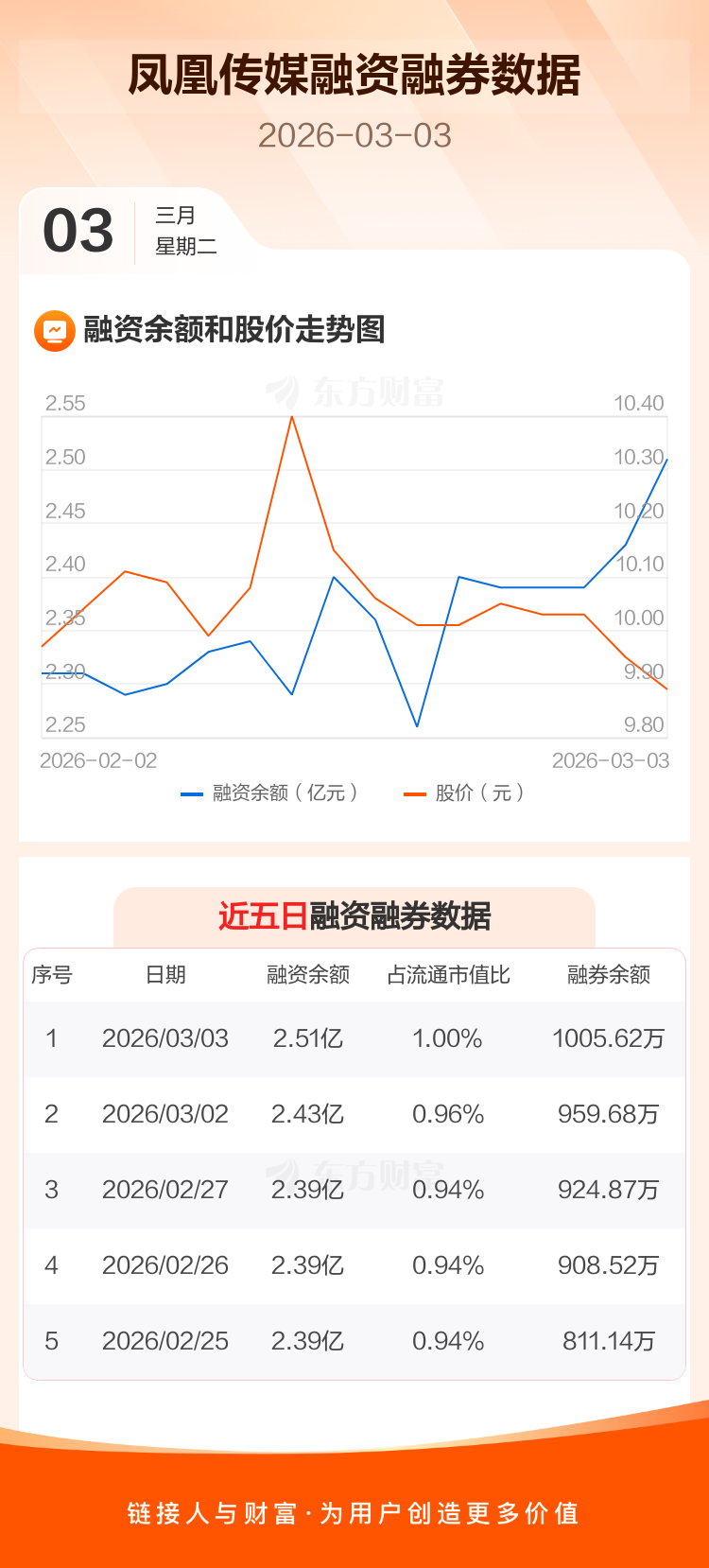 交易所最新数据显示,凤凰传媒于2026年3月3日获融资买入2397.65万元,融资偿还1581.83万元,当日融资净买入815.82万元。目前,该股融资余额2.51亿,占流通市值比例为1.00%。