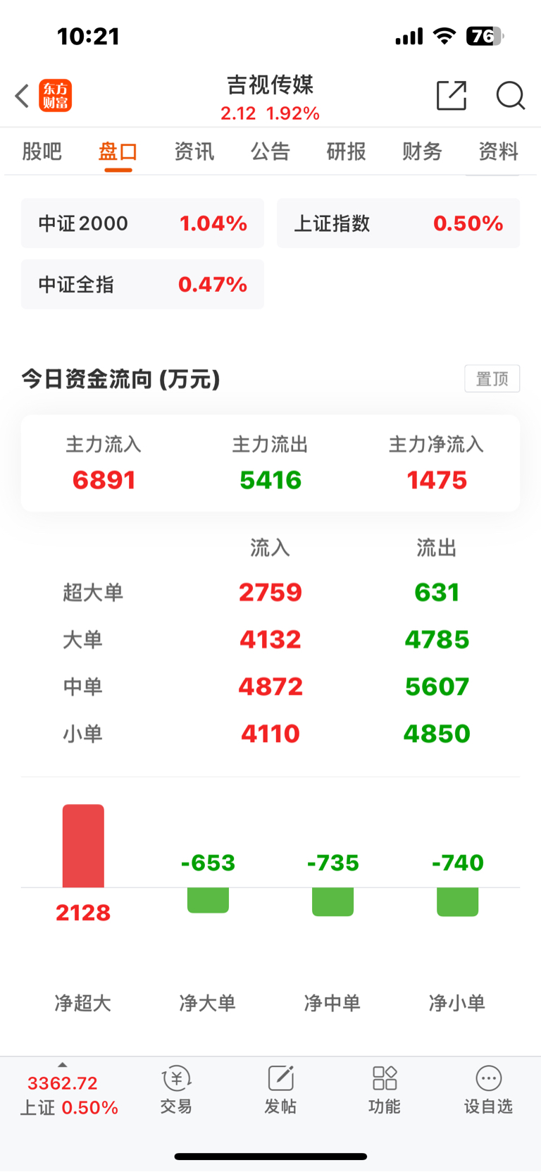 $吉视传媒(SH601929)$ 你们跑啥,主力进来了