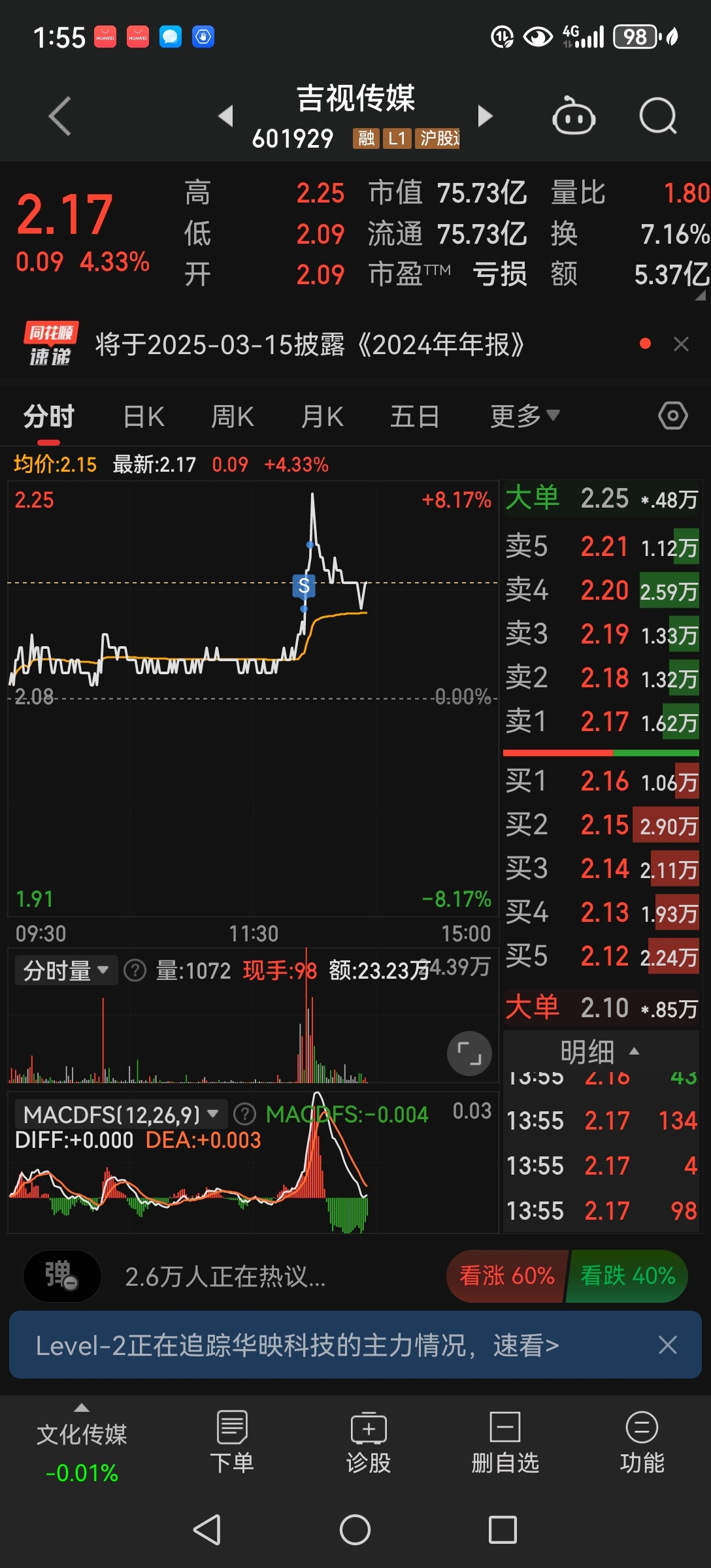 $吉视传媒(SH601929)$ 早上为那样要去和那一分杠,这下舒服了吧
