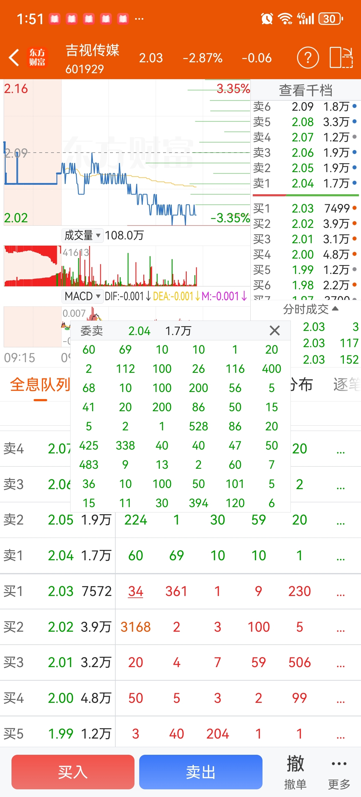 $吉视传媒(SH601929)$ 这卖1的单子只是东财的单子,还是全市场的单子?