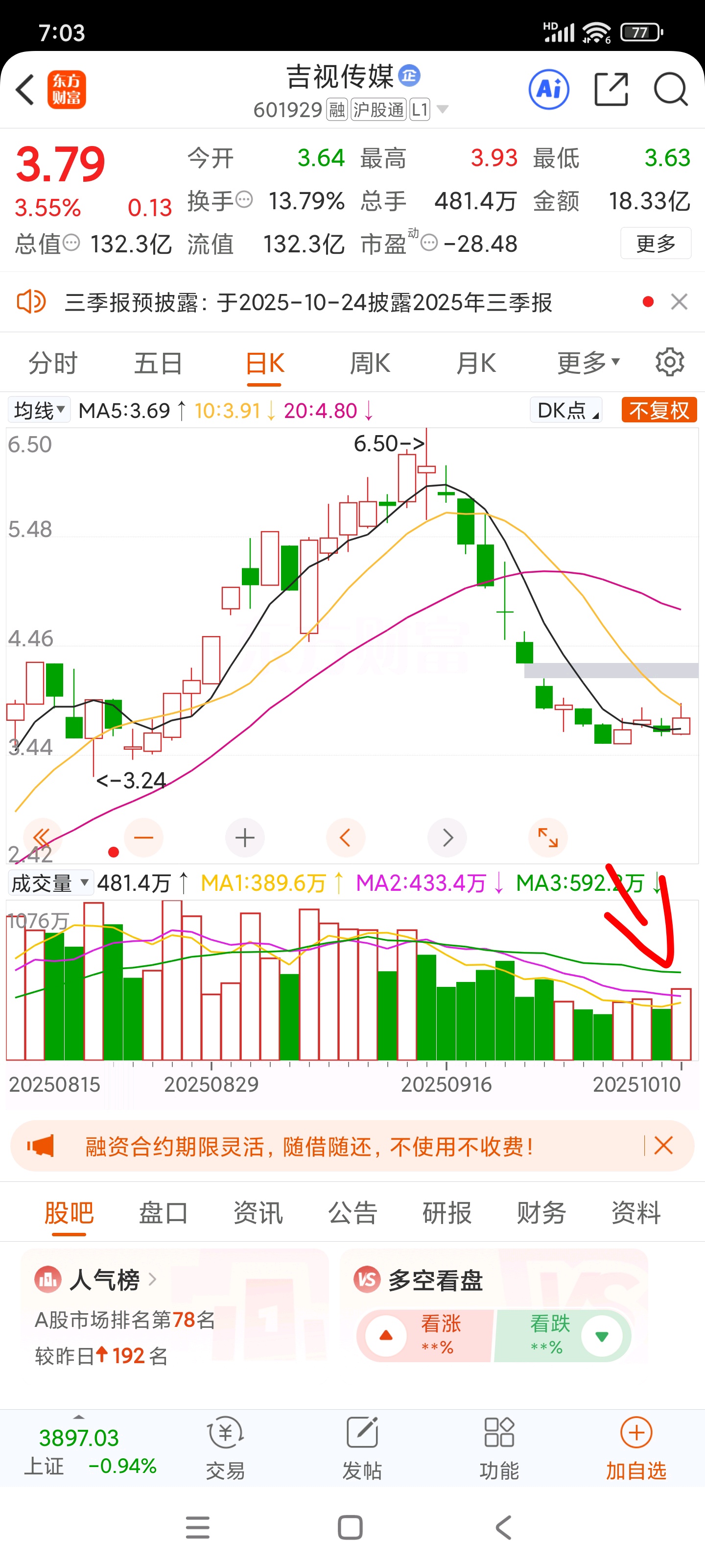 科技股获利回吐,超跌股会有一波超跌反弹,买就买连续下跌,跌幅深的个股,吉视传媒算