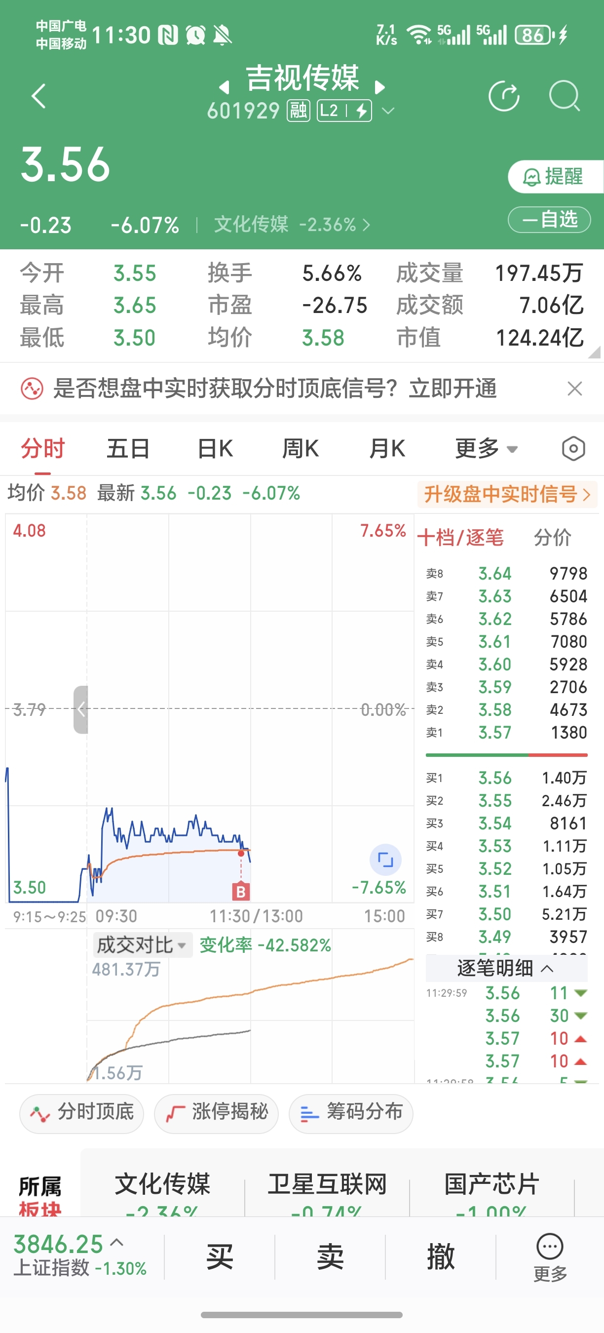 $吉视传媒(SH601929)$ 不知道咋回事,最近我一买他们就狠狠跌