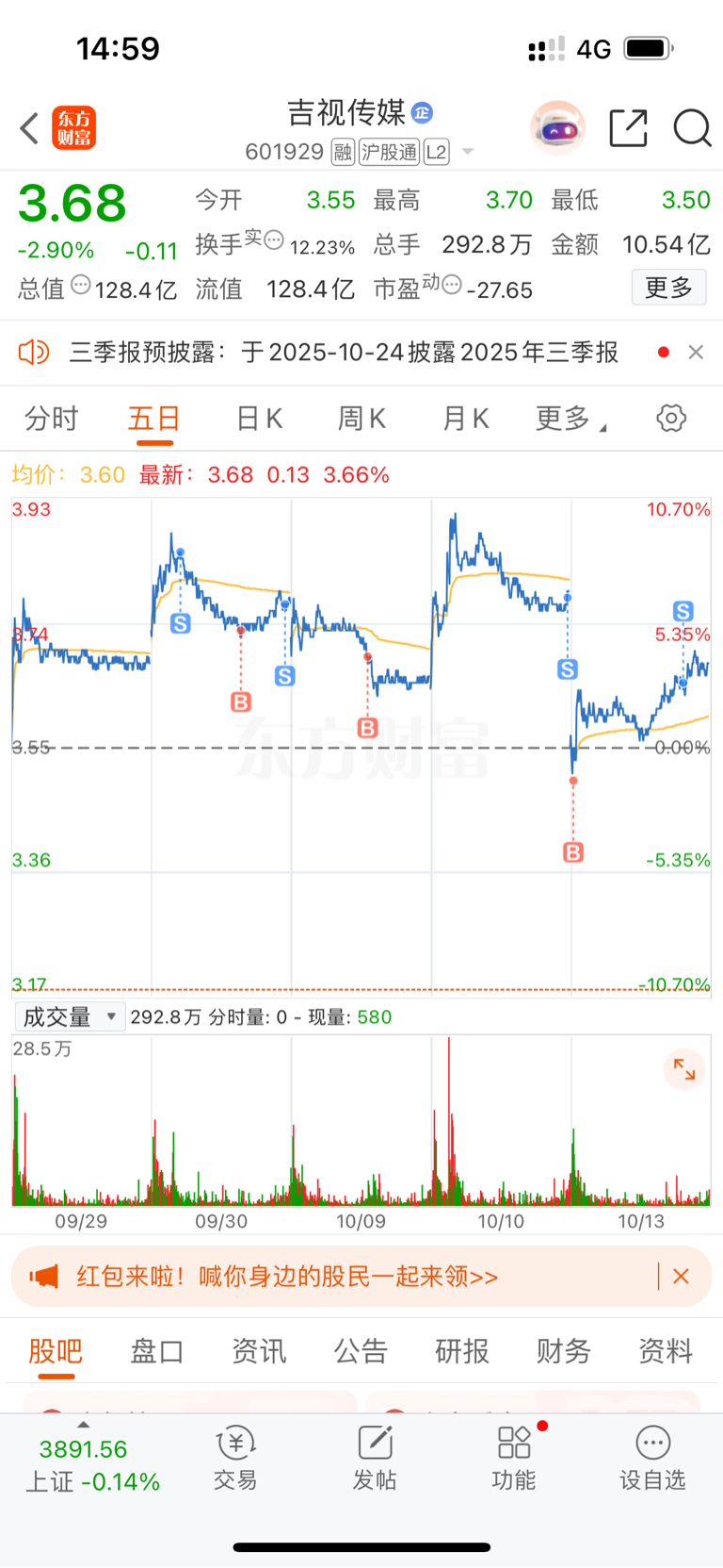 $吉视传媒(SH601929)$ 这股真不好'''T,又T飞了,希望明天低开高走吧