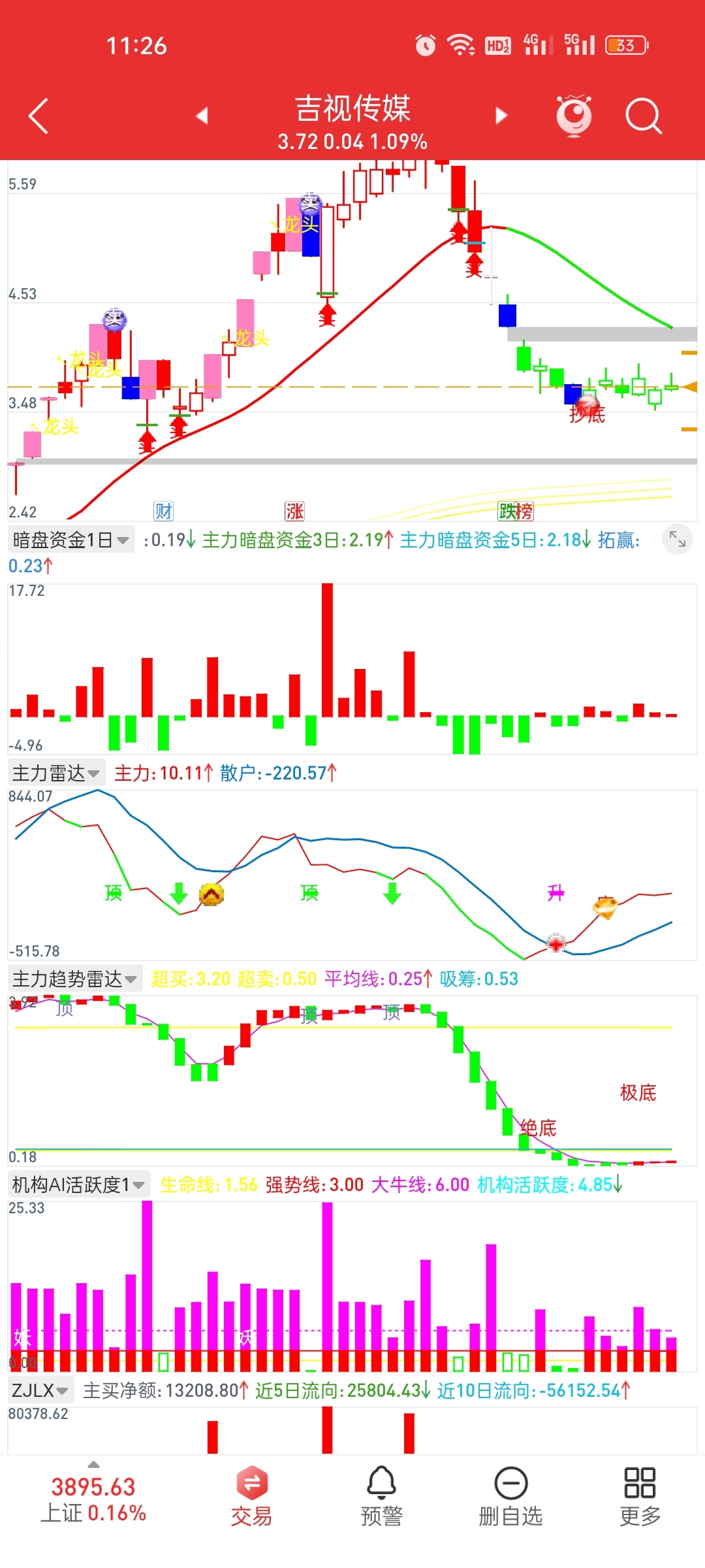 $吉视传媒(SH601929)$ 暗盘资金目前流入1900万