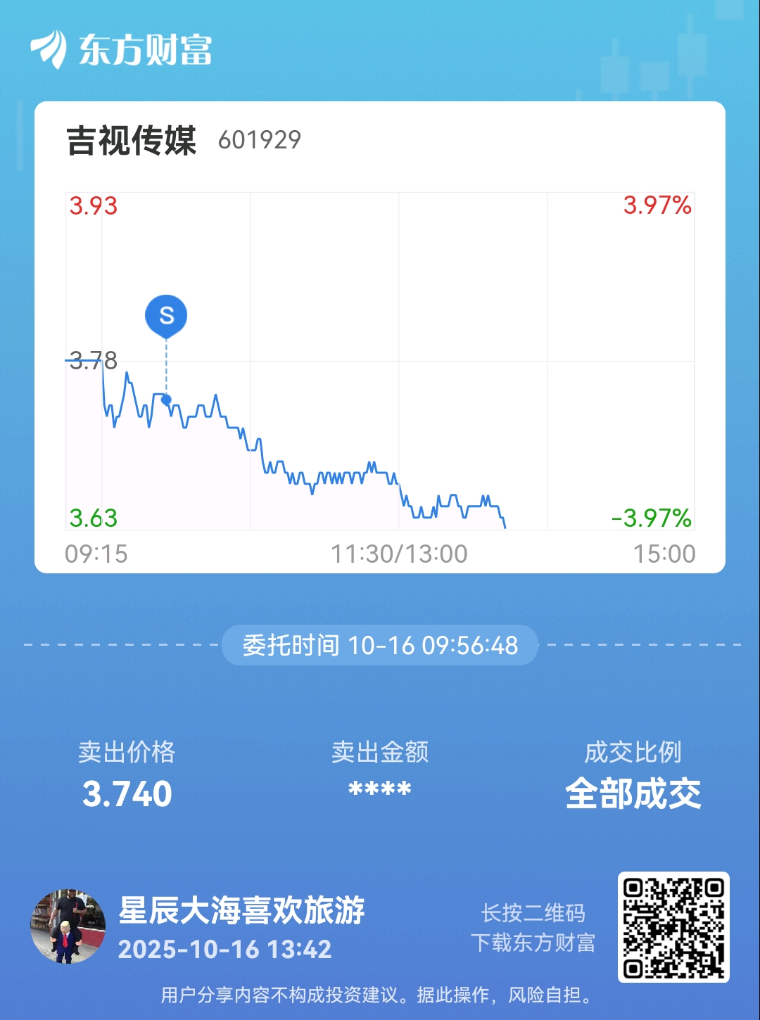 $吉视传媒(SH601929)$ 尾盘能不能破3.6?同样的金额让我多接几千股吧