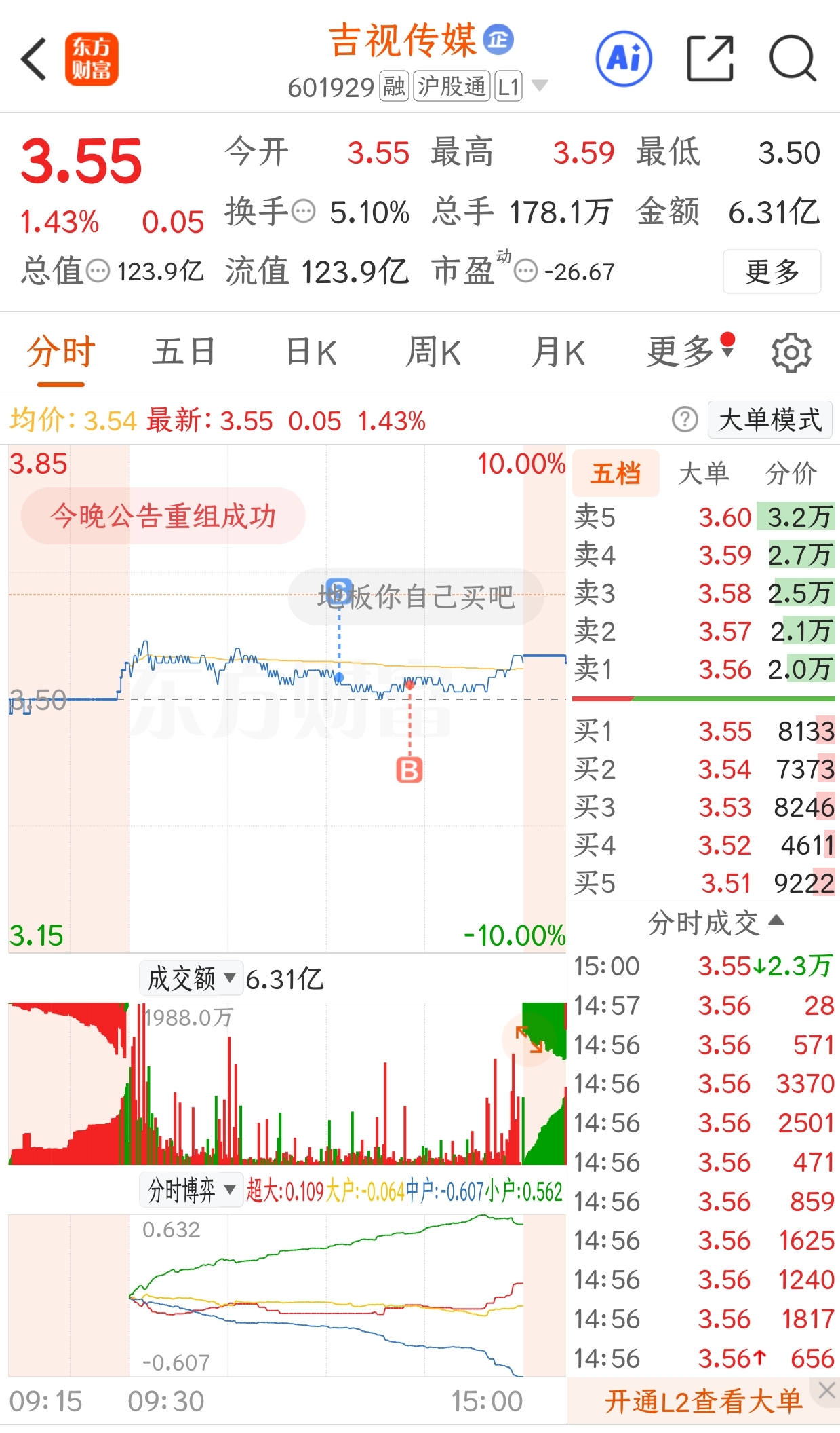 $吉视传媒(SH601929)$ 今天50竟然没破,感觉后市可期